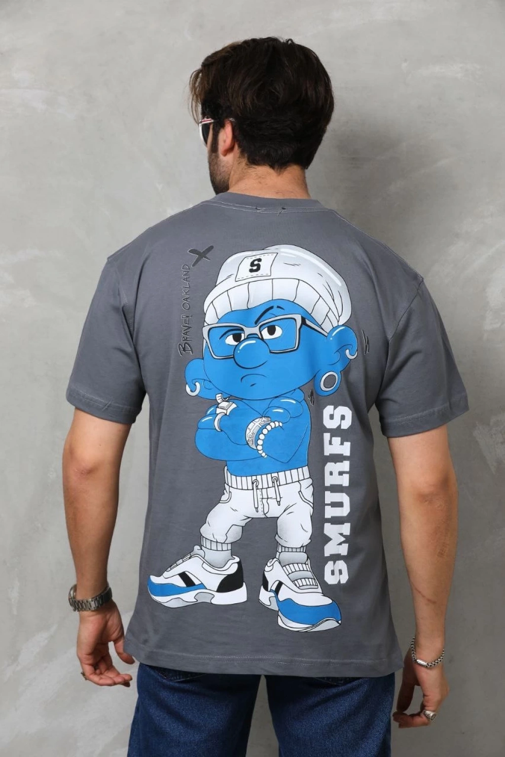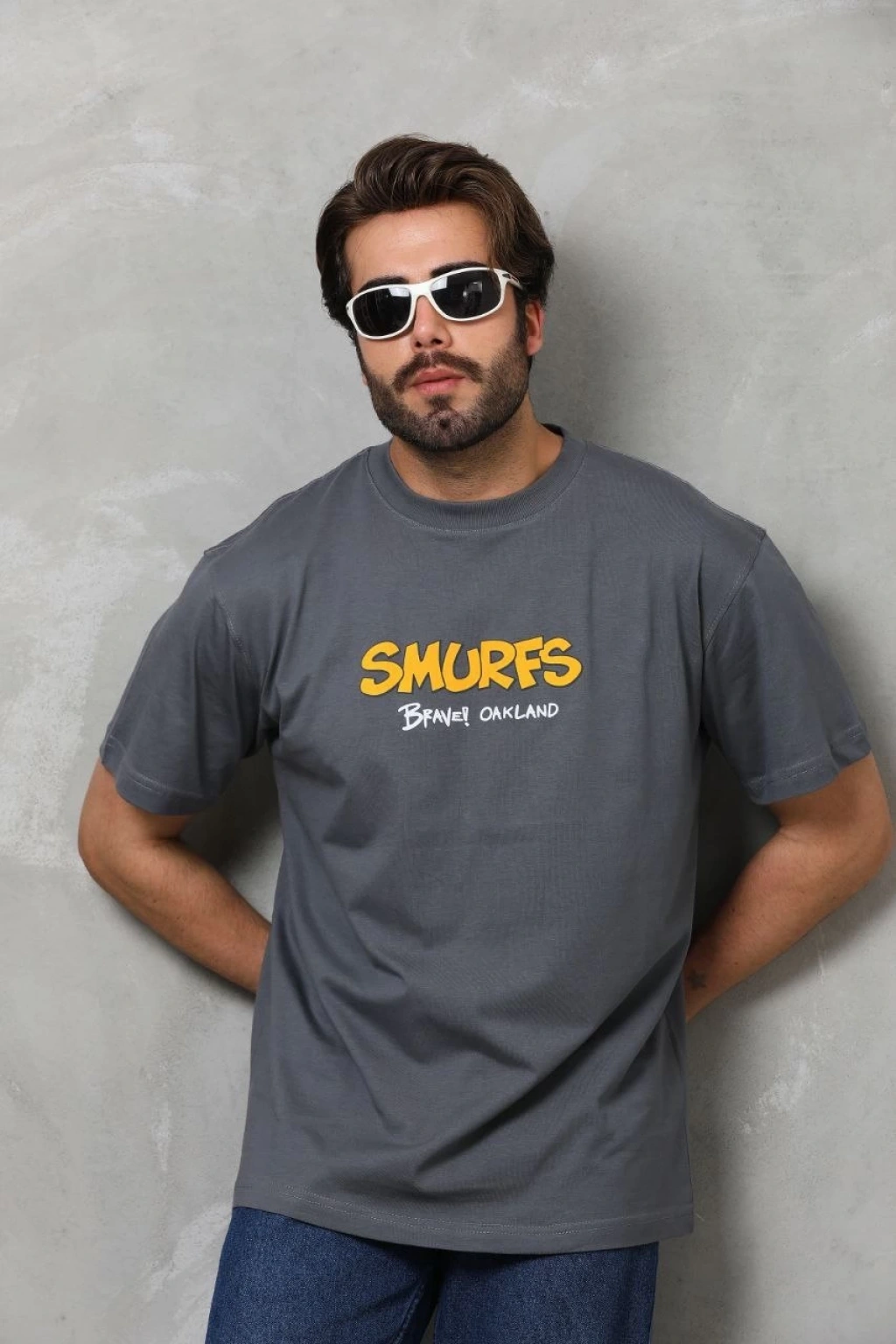 Erkek Baskılı T-Shirt Kısa Kol Bisiklet Yaka Regular Fit Rahat Kalıp Günlük Tişört - Füme
