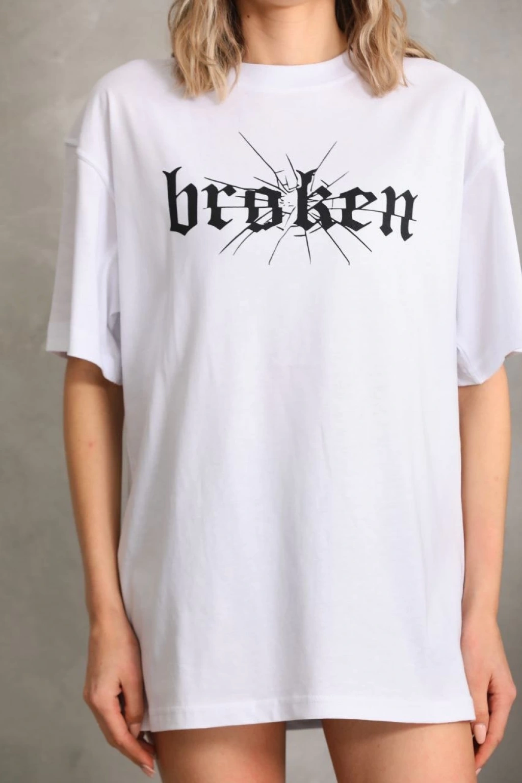 Baskılı Oversize T-Shirt - Beyaz -