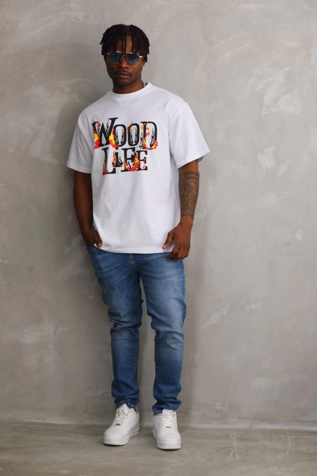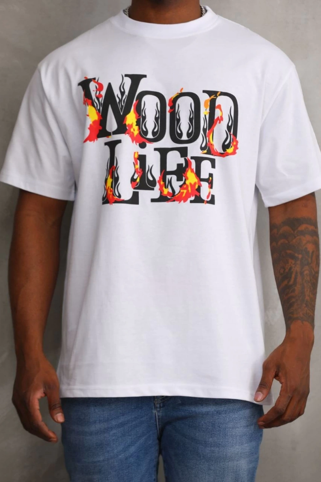 Erkek Baskılı T-Shirt Kısa Kol Bisiklet Yaka Regular Fit Rahat Kalıp Günlük Tişört - Beyaz