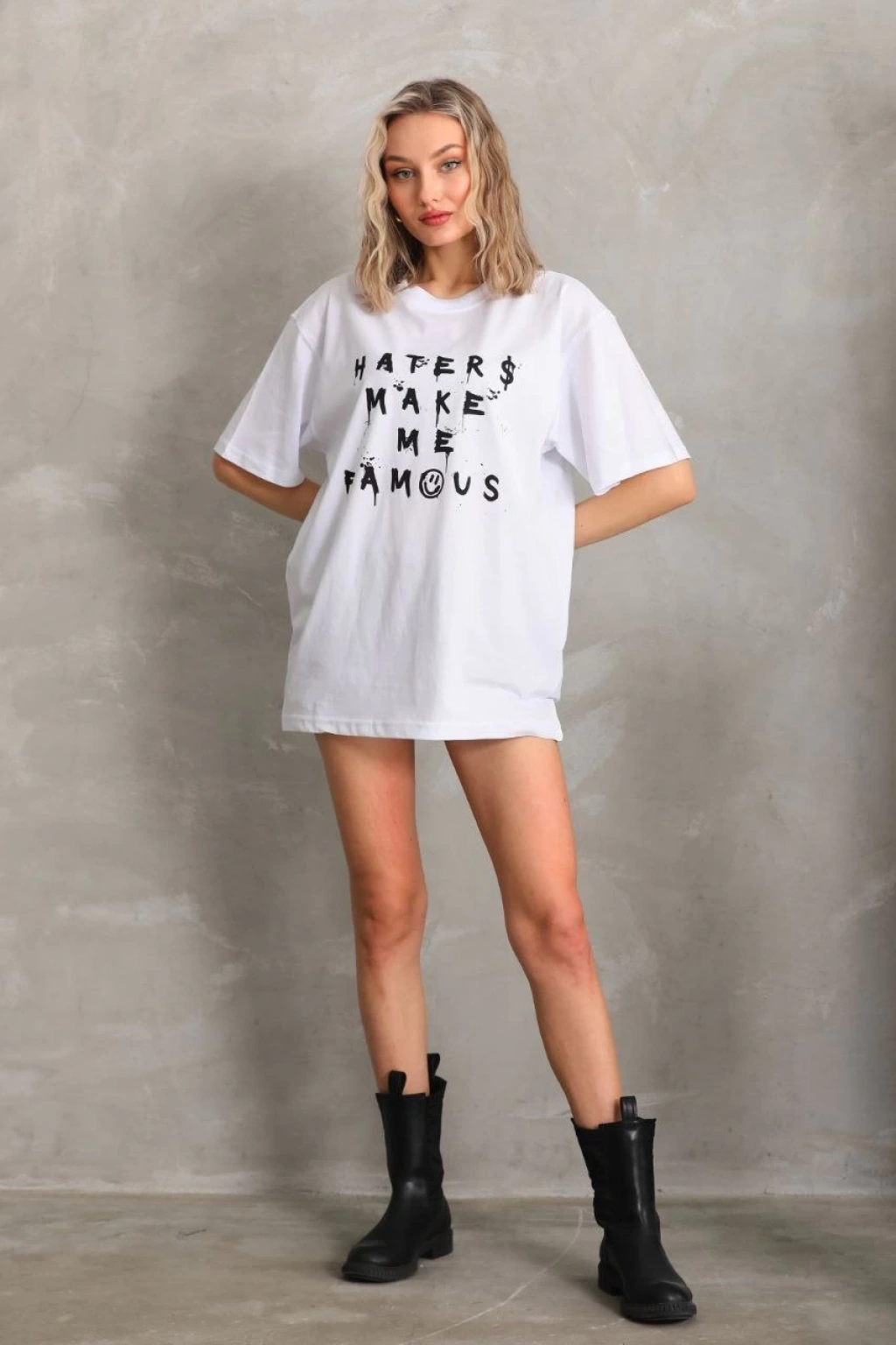 Baskılı Oversize T-Shirt - Beyaz -