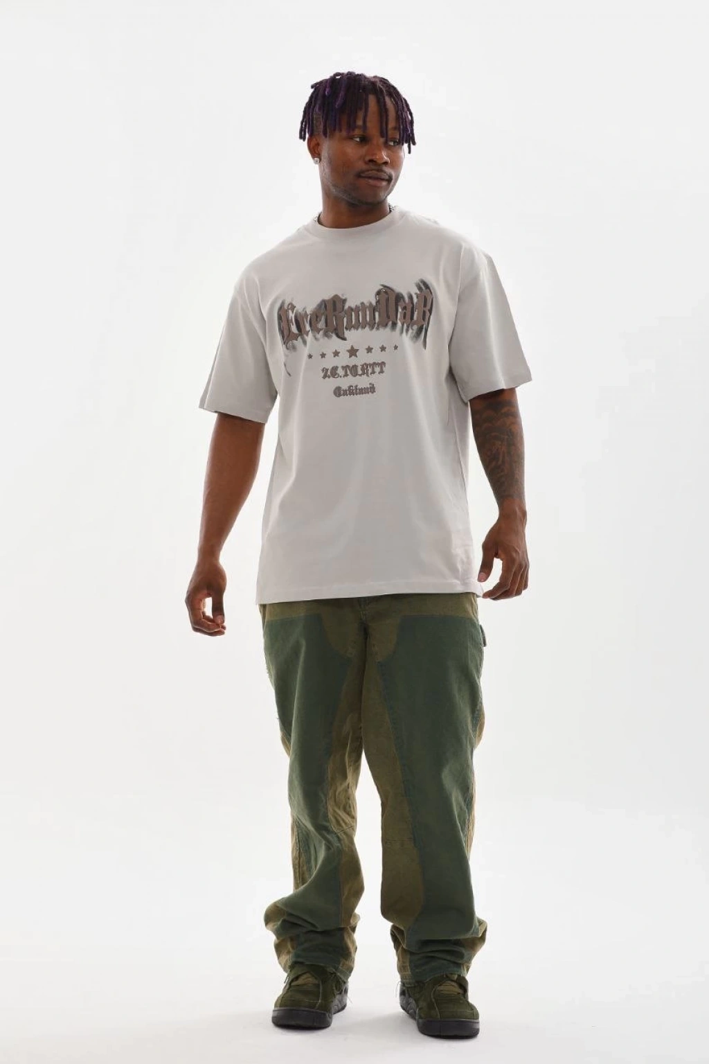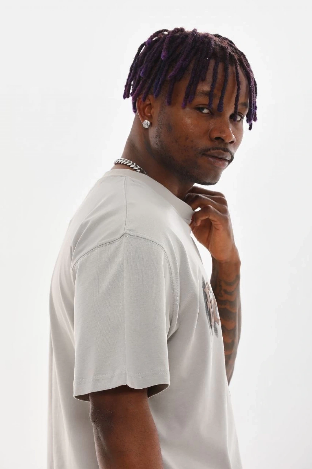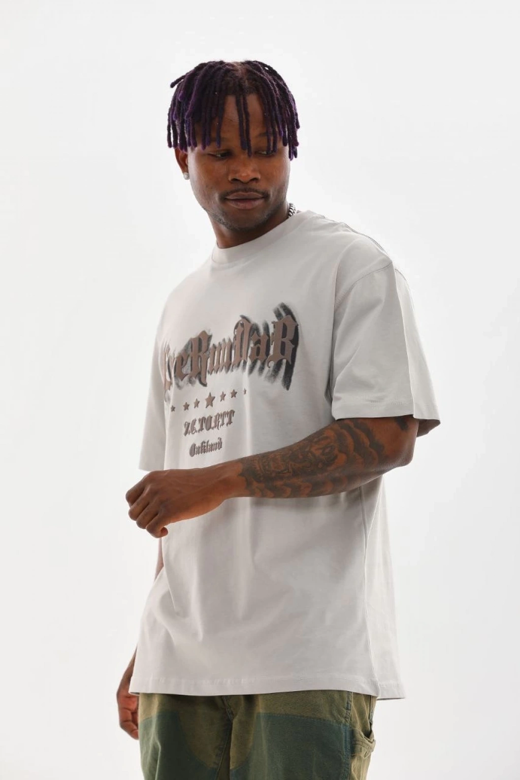 Erkek Baskılı T-Shirt Kısa Kol Bisiklet Yaka Regular Fit Rahat Kalıp Günlük Tişört - Gri