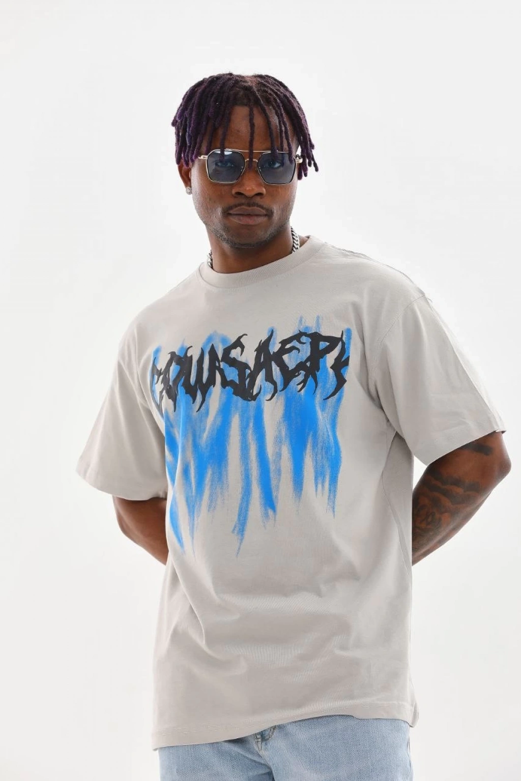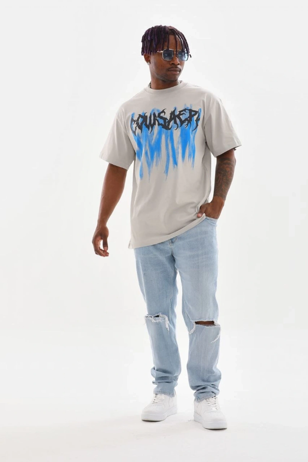 Erkek Baskılı T-Shirt Kısa Kol Bisiklet Yaka Regular Fit Rahat Kalıp Günlük Tişört - Gri