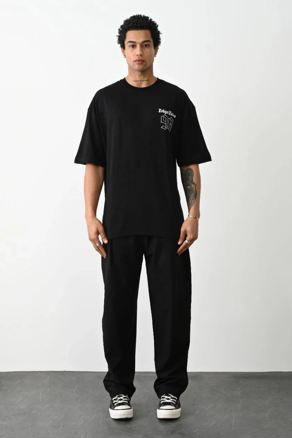 Erkek Baskılı T-Shirt Kısa Kol Bisiklet Yaka Regular Fit Rahat Kalıp Günlük Tişört - Siyah