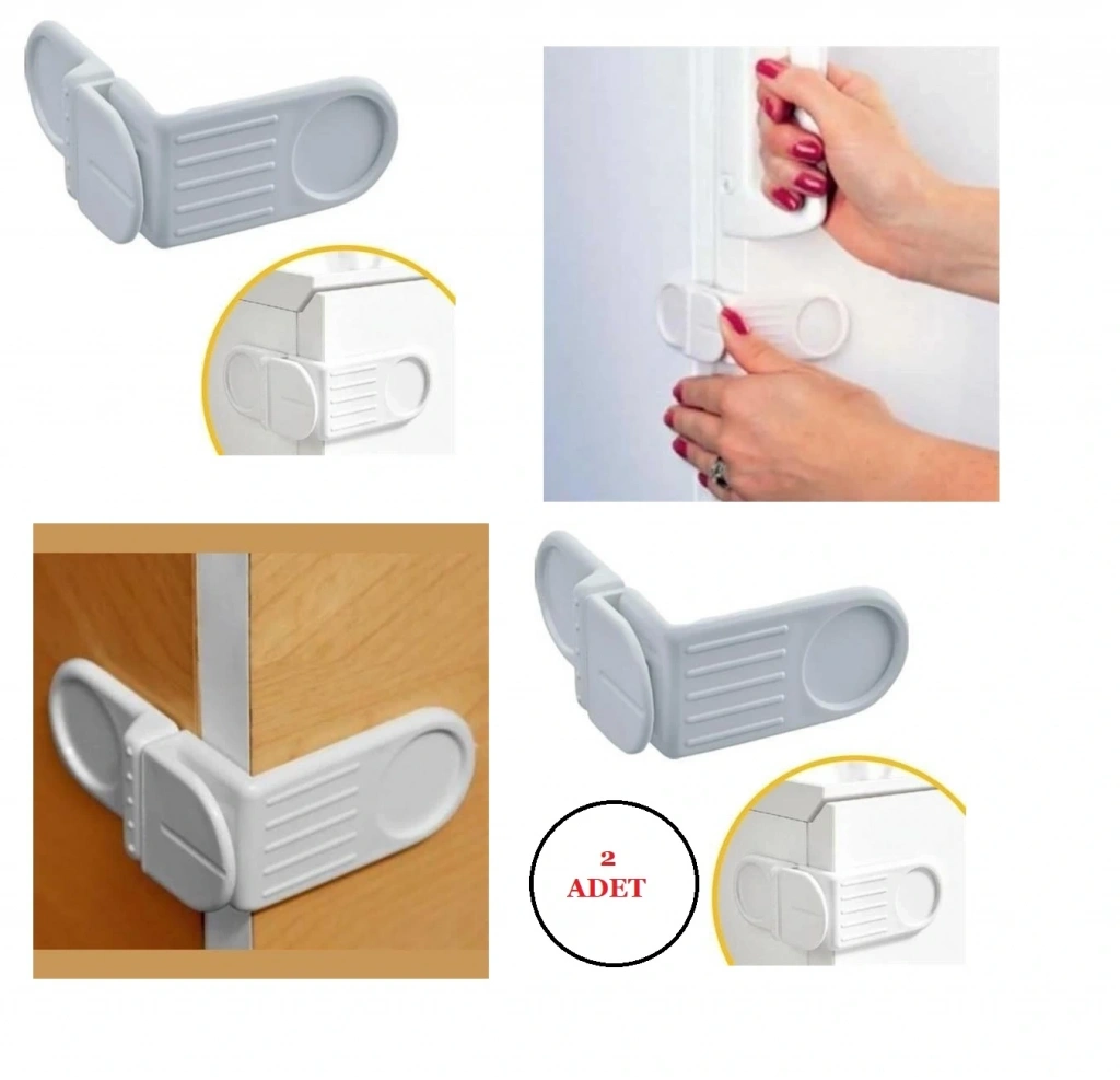 Bebek Çocuk Güvenlik Çekmece Ve Dolap İçin Yapışkanlı Vidasız Köşe Kapak Kilidi X 2 Adet
