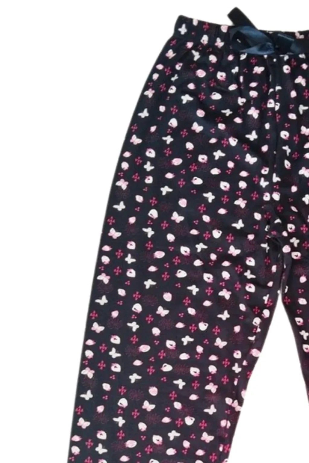 Düz Renk Mini Çiçek Desenli Penye Kadın Ev Şortu Bacak Dantel Detaylı Ev Giyim Siyah