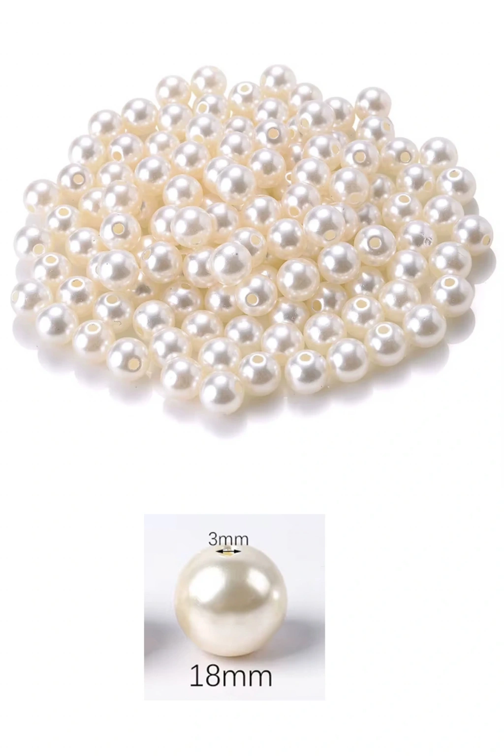 1.000 gram (1 kg.) 18mm Krem Renk Plastik İnci Boncuk Çanta ve Takı Yapım Boncuğu (~220 adet)