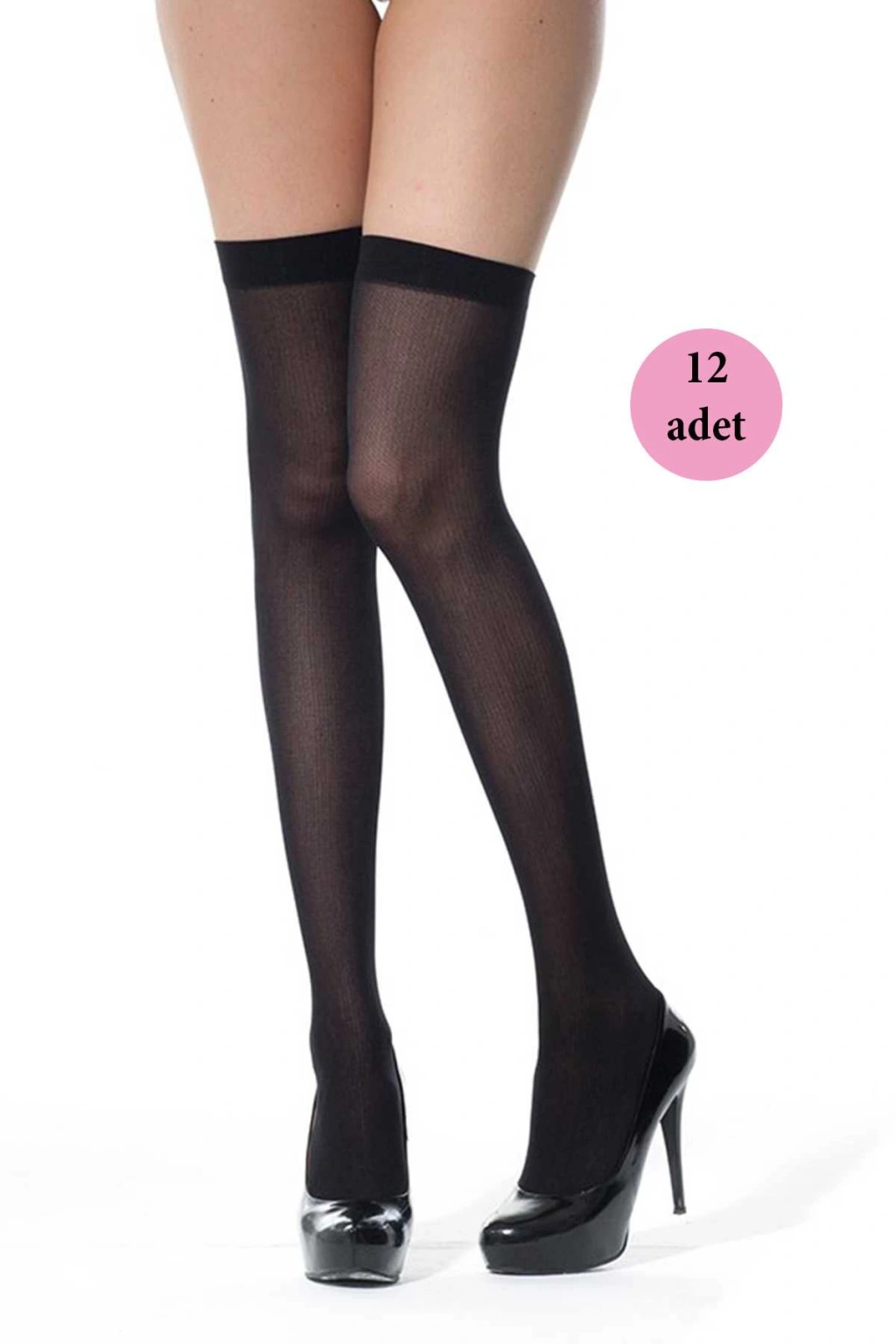 12 Adet Müjde Mus Kaçmaz Lastikli Çorap 70 denye 500 Siyah