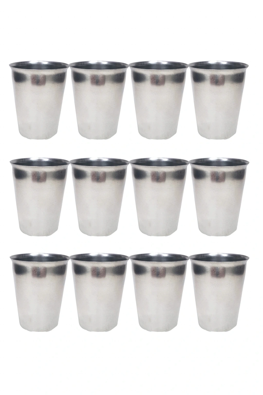 12 Adet Paslanmaz Çelik Krom Bardak 9 x 7,5 x 5,5cm
