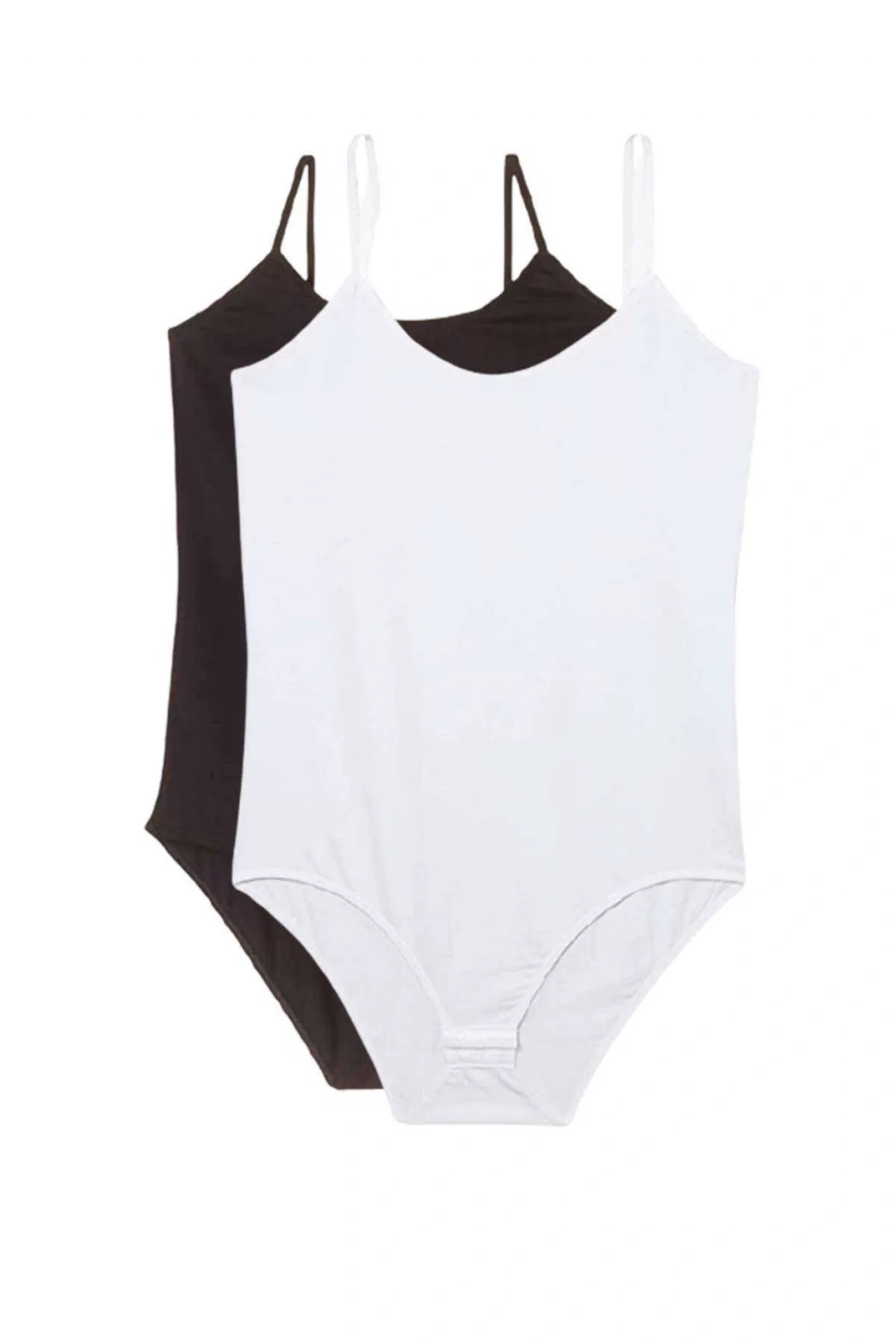 biçomi 2 Adet İp Askılı Kadın Çıtçıtlı Body Siyah ve Beyaz