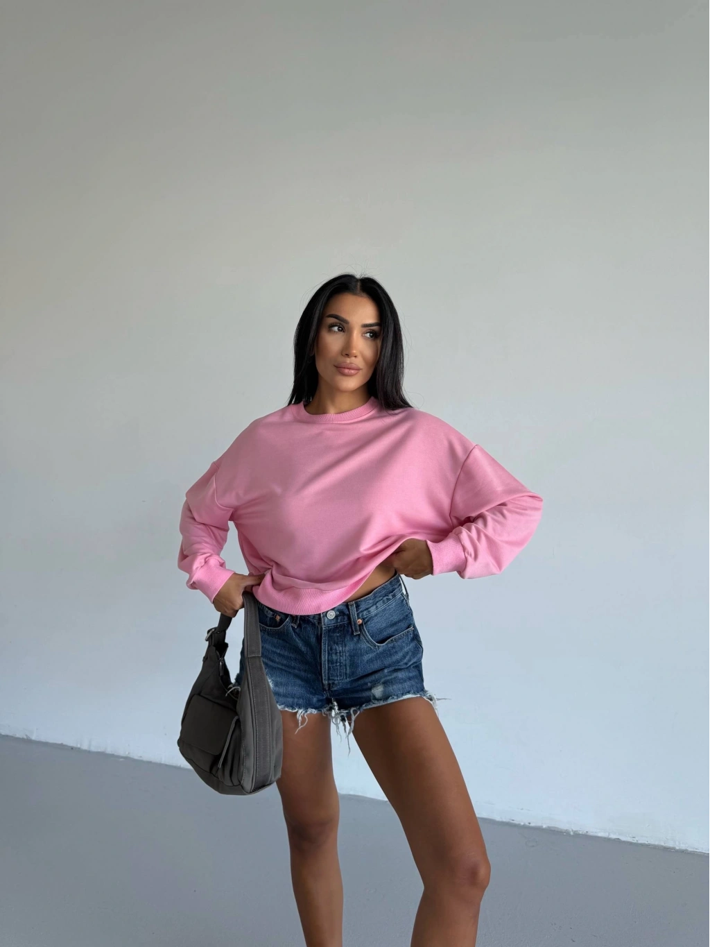 F2339 Bisiklet Yaka Sweat, şık tasarımı ile gardırobunuzun vazgeçilmezi olmaya aday!
