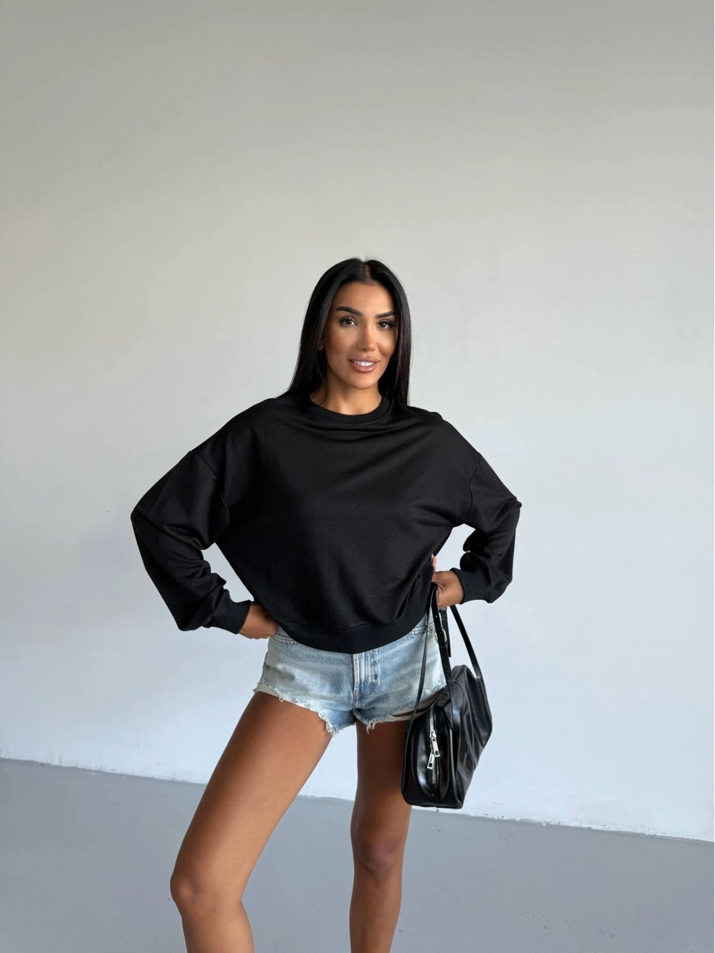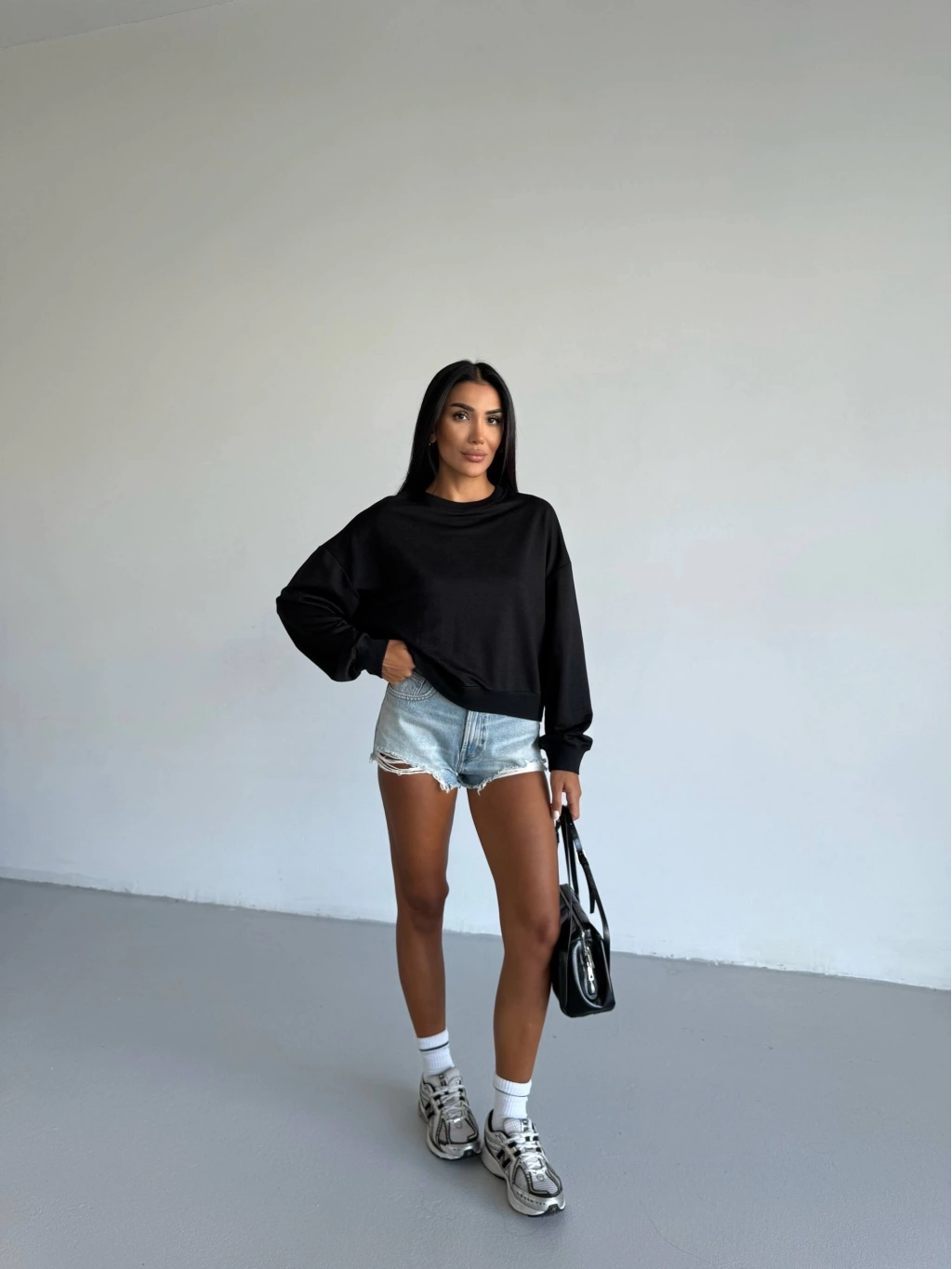 BİÇOMİ 2 iplik bisiklet yaka sweat siyah f2339