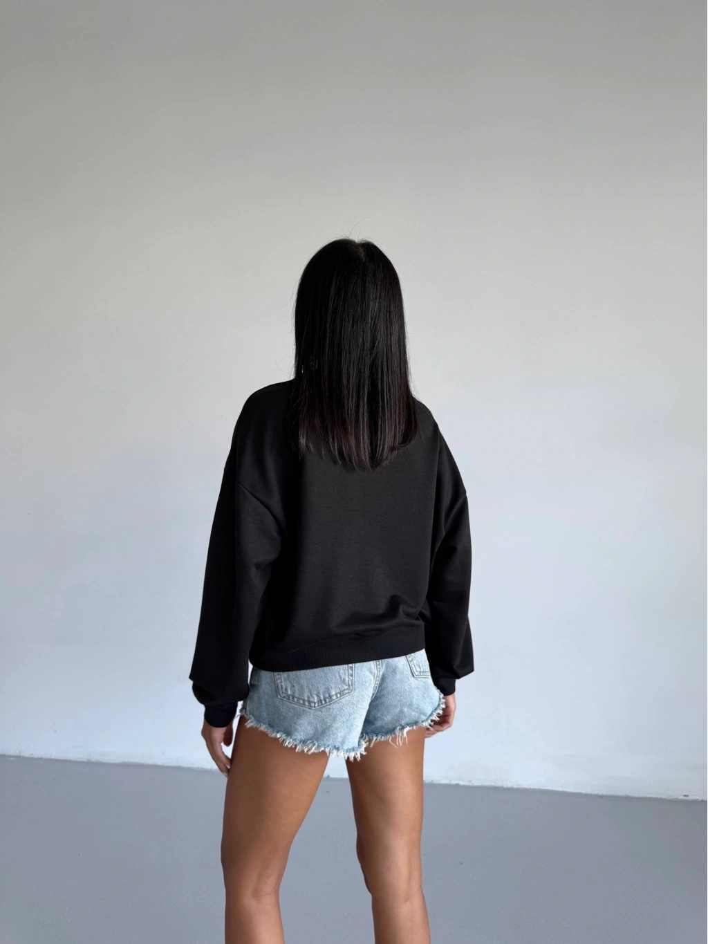 BİÇOMİ 3 iplik şardonlu oversize true baskılı sweat siyah