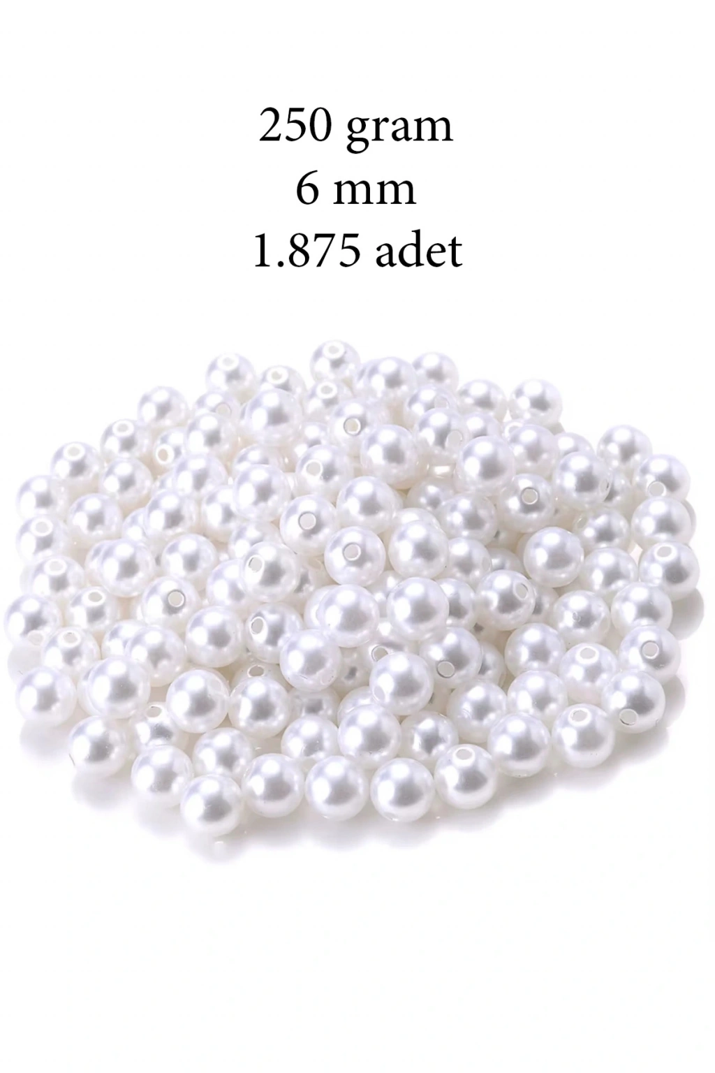 250 gram 6mm Beyaz Renk Plastik İnci Boncuk Çanta ve Takı Yapım Boncuğu (~1.875 adet)