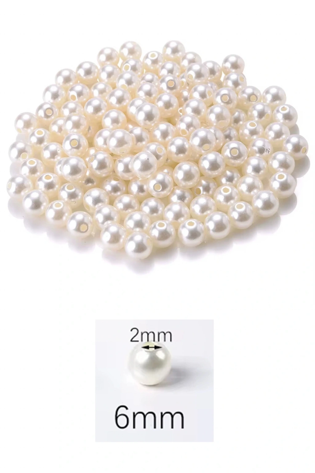 250 gram 6mm Krem Renk Plastik İnci Boncuk Çanta ve Takı Yapım Boncuğu (~1.875 adet)