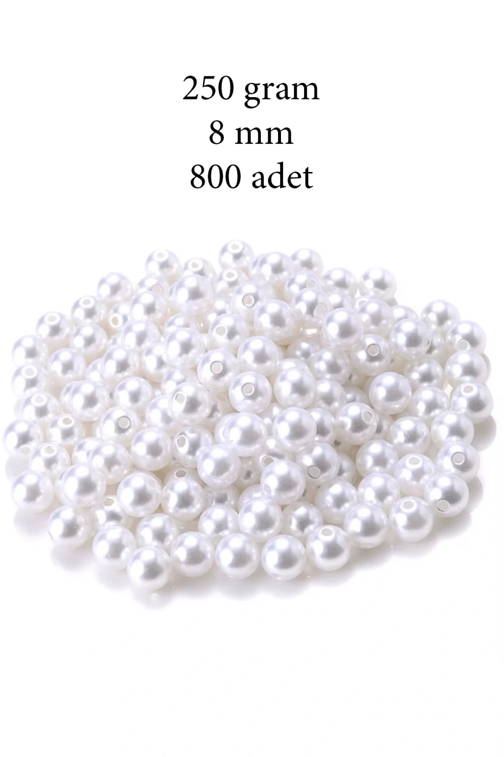 250 gram 8mm Beyaz Renk Plastik İnci Boncuk Çanta ve Takı Yapım Boncuğu (~800 adet)