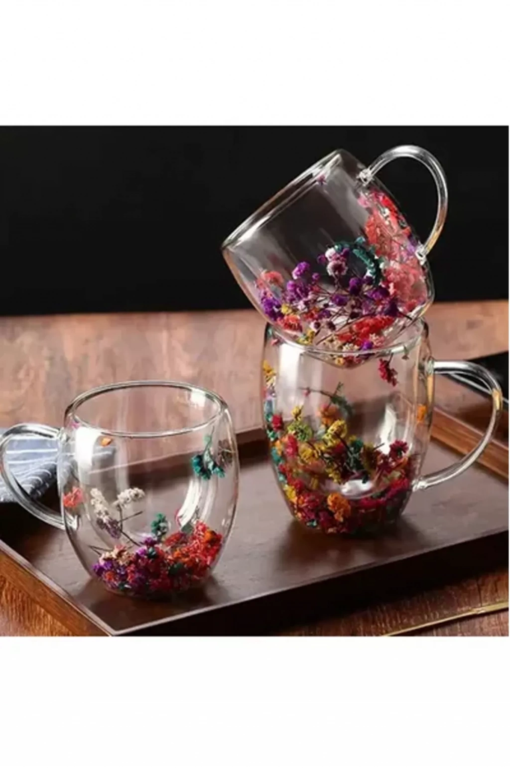 biçomi 250 Ml Büyük Cidarlı Çiçekli Bardak 1 Adet Biçomi-1385