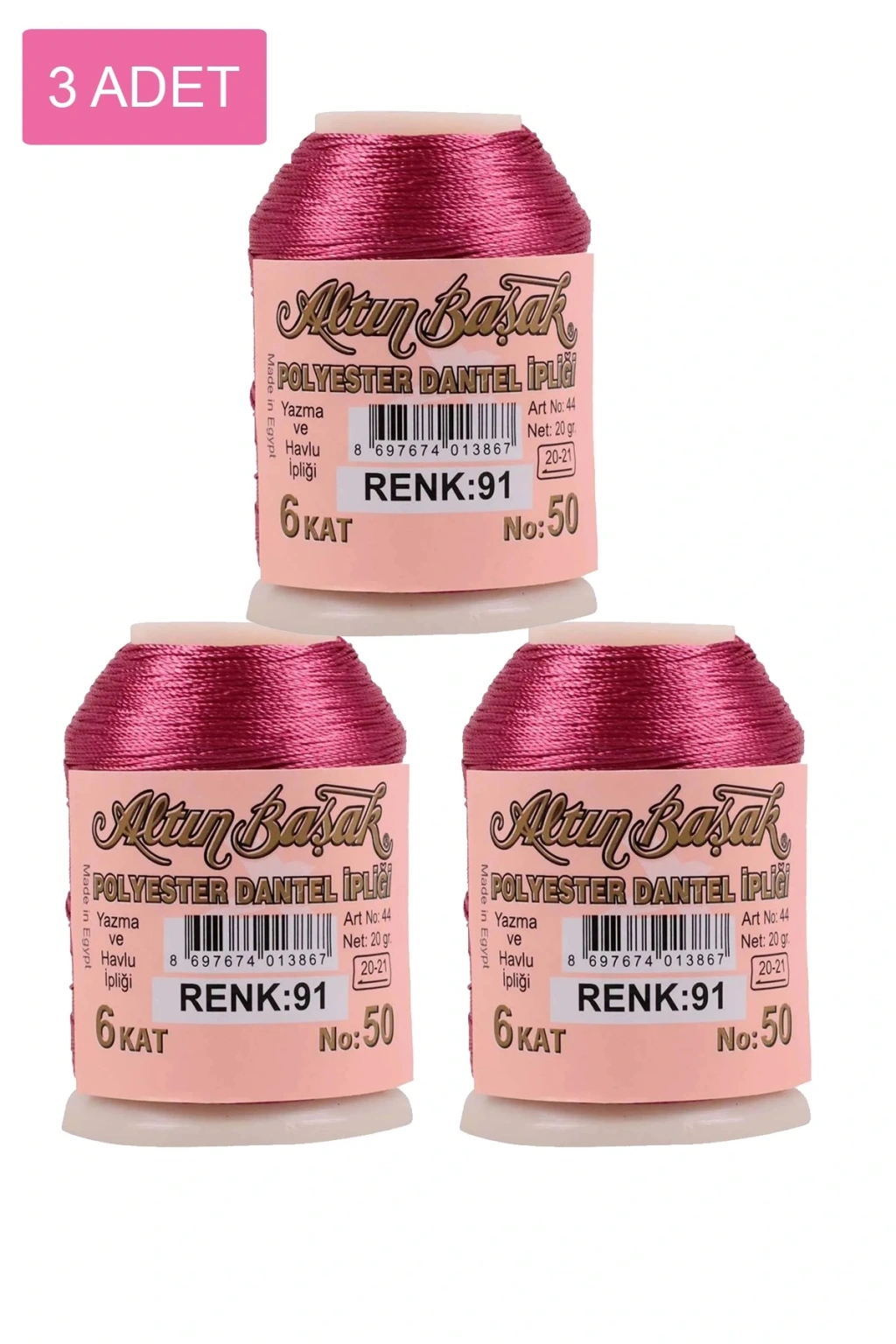 3 Adet Altınbaşak Oya ve Dantel İpi 20 gr - Biçomi - No: 091
