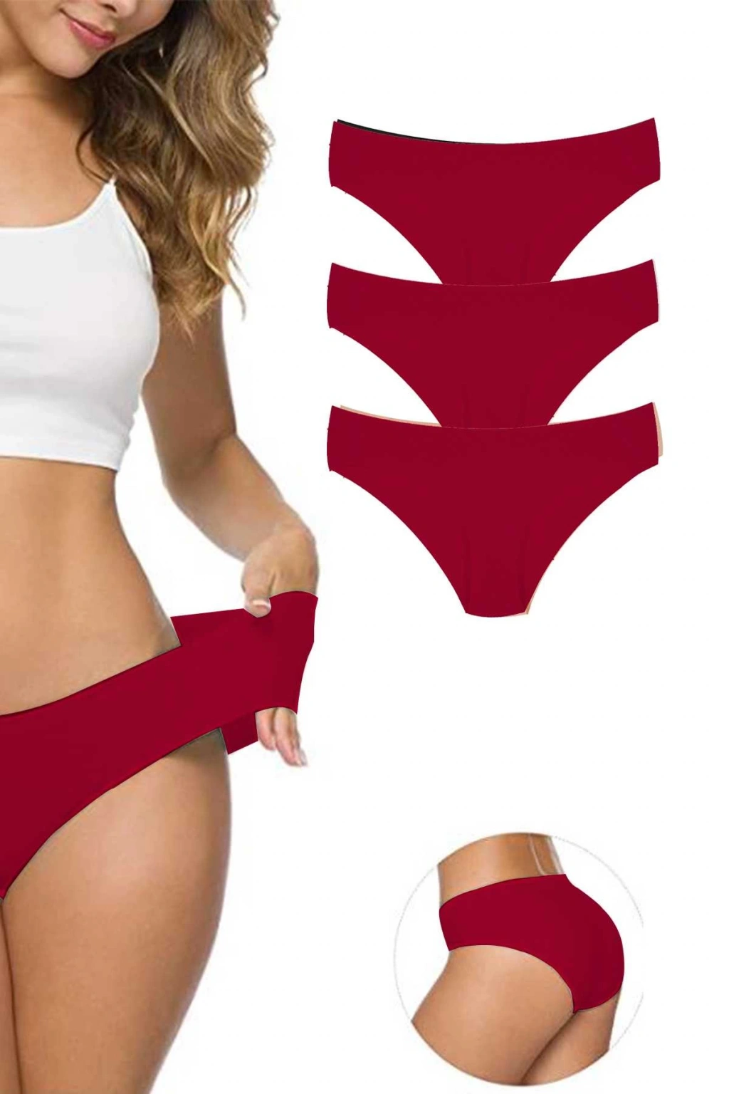 3 Adet Kadın Dikişsiz Lazer Kesim Esnek İz yapmayan Külot Bordo 1mm ince ve lazer kesim dikişsiz yapısı sayesinde Pantolon , günlük kıyafet ,gece kıyafetlerinizde iz yapmaz Ofis , gece daveti, seyahat, yolculuk ve dar kıyafetlerde gönül rahatlığıyla kullanabilirsiniz. Hafif ve esnek yapısı sayesinde bedeninizi tam kavrayıp, iç çamaşırı yokmuş hissi vererek iç çamaşırı izi yapmaz ve gün boyu rahat hareket etmenize olanak sunacaktır. Elastik yapısı sayesinde kıvrılma yapmaz. Nefes alan dokusu ile cildinizi sürekli kuru tutar. Siparişleriniz hijyenik olarak tek tek paketlenerek özel poşet içerisinde size ulaştırılacaktır. Sağlıklı günlerde kullanın