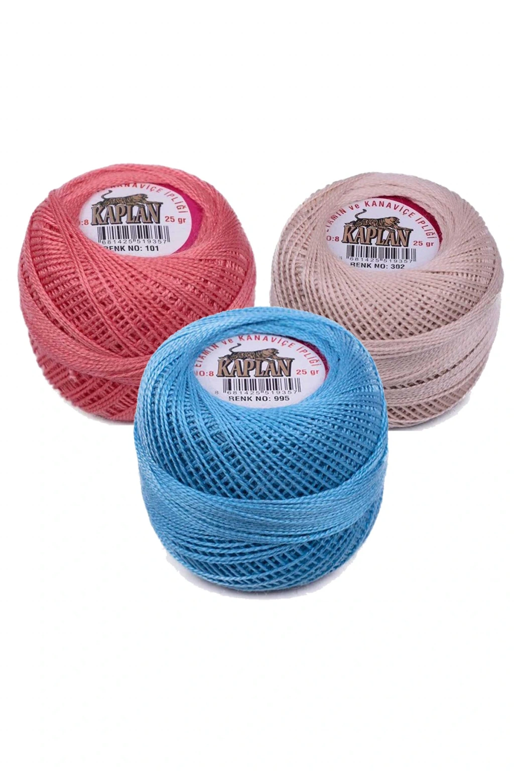 3 Adet Kaplan Etamin Ve Kanaviçe İpi 8 No Kod/Renk: 101 - 302 - 995 - Ryl