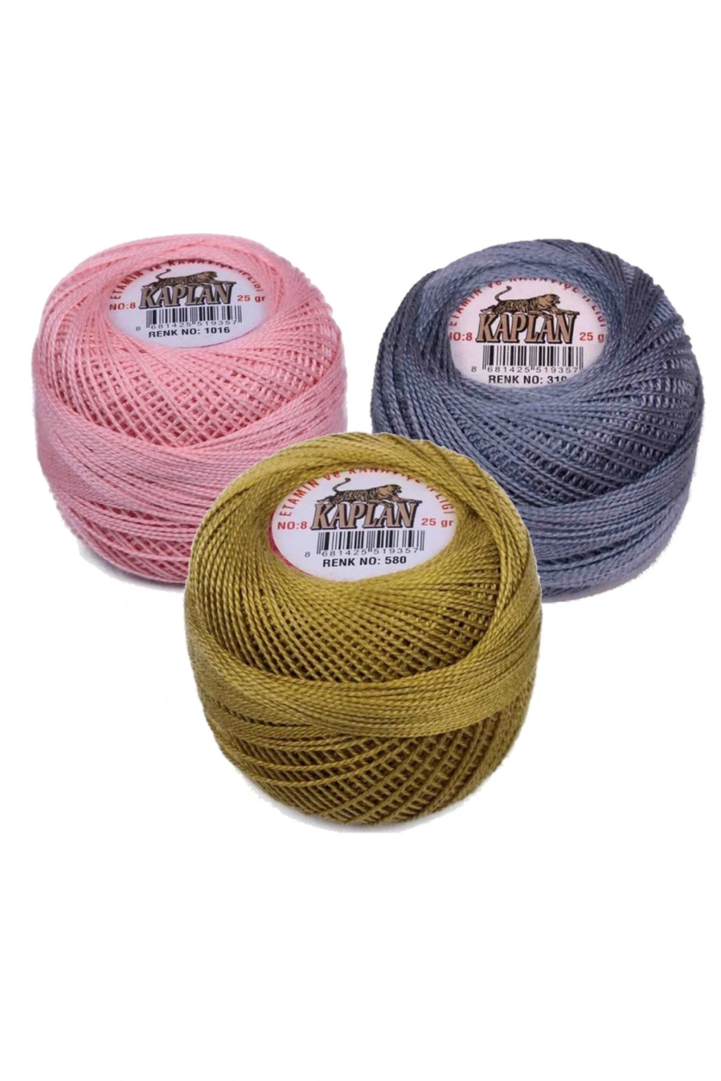 3 Adet Kaplan Etamin Ve Kanaviçe İpi 8 No Kod/Renk: 1016 - 319 - 580 - Ryl