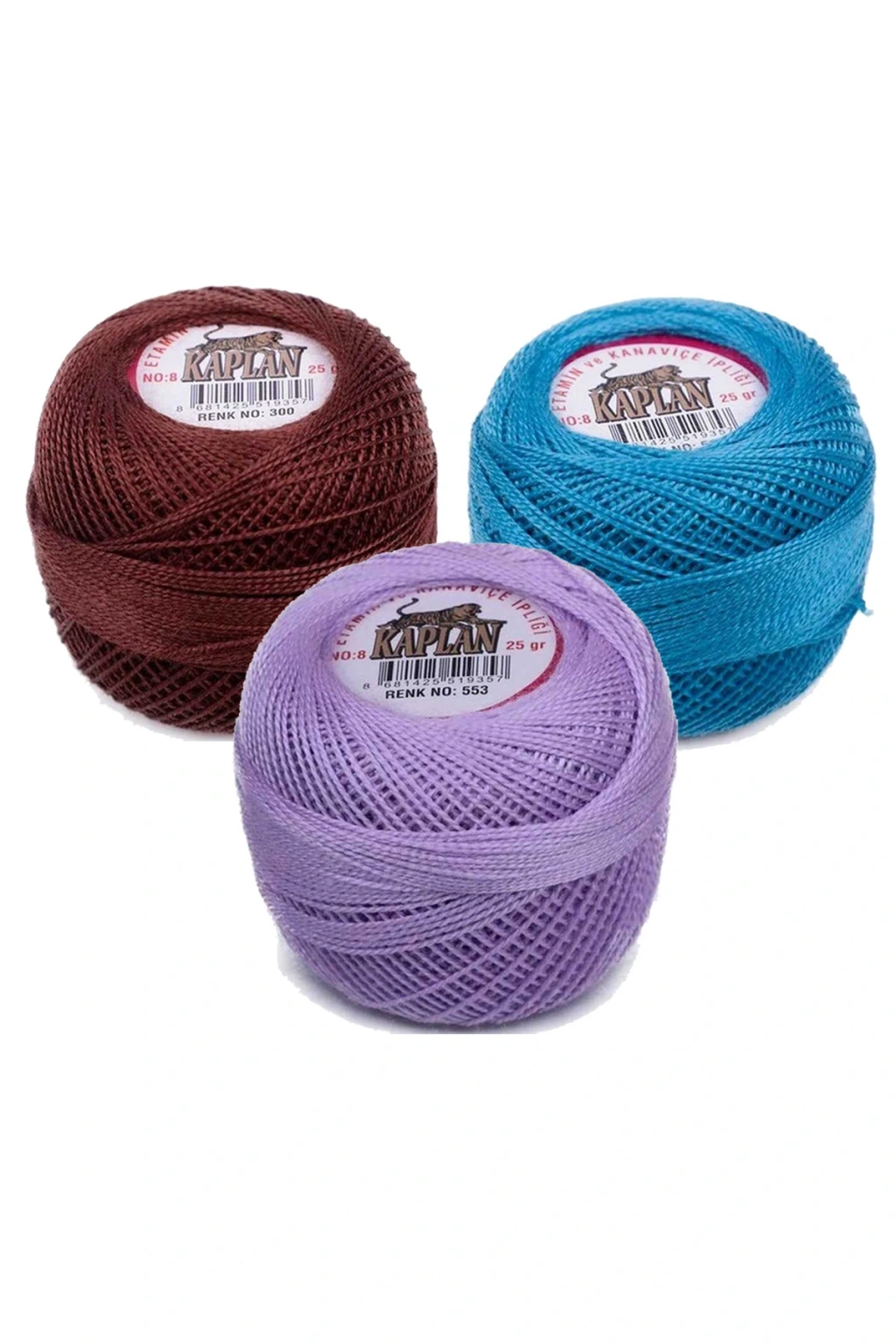 3 Adet Kaplan Etamin Ve Kanaviçe İpi 8 No Kod/Renk: 300 - 518 - 553 - Ryl