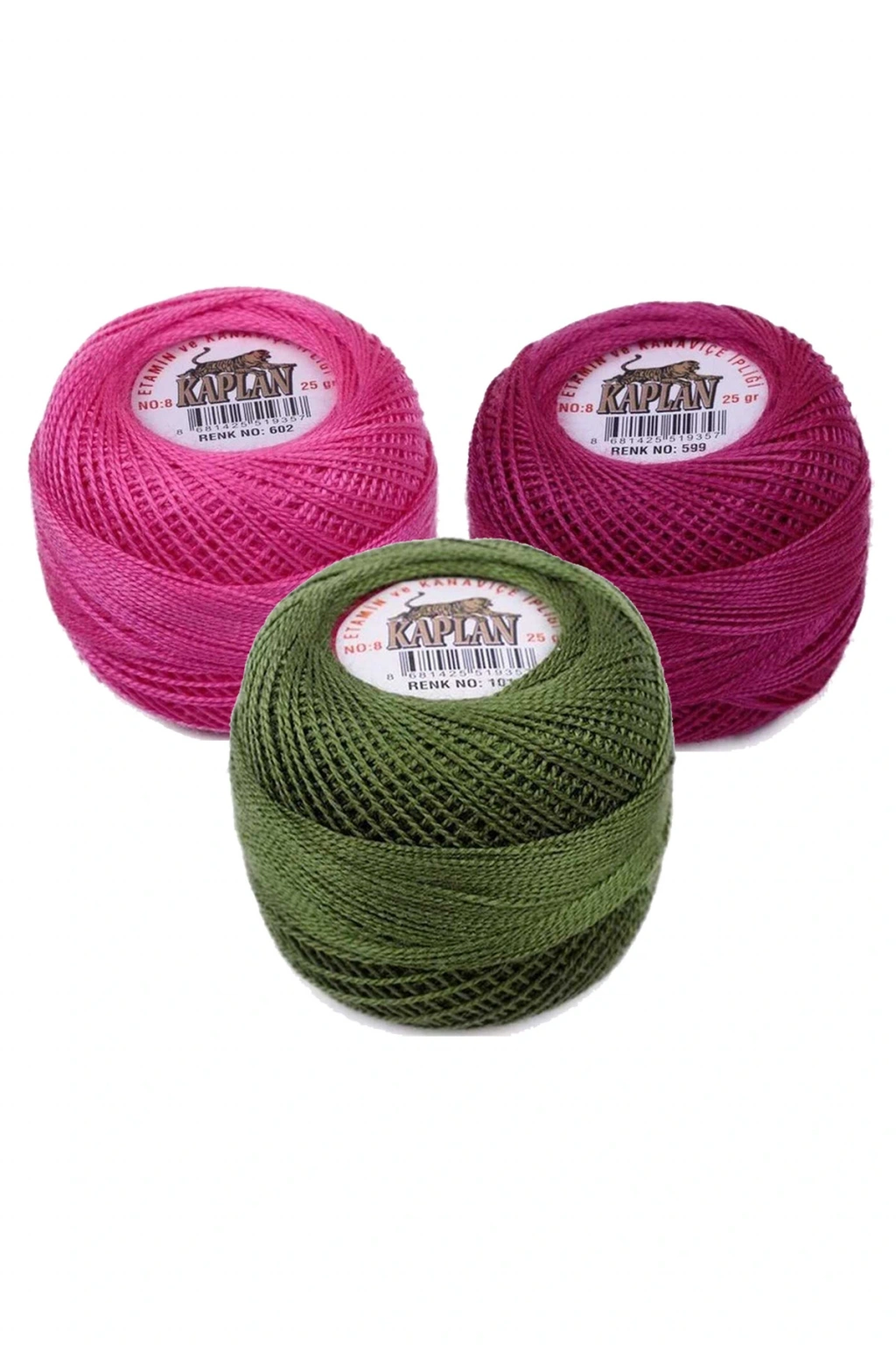3 Adet Kaplan Etamin Ve Kanaviçe İpi 8 No Kod/Renk: 602 - 599 - 1015 - Ryl
