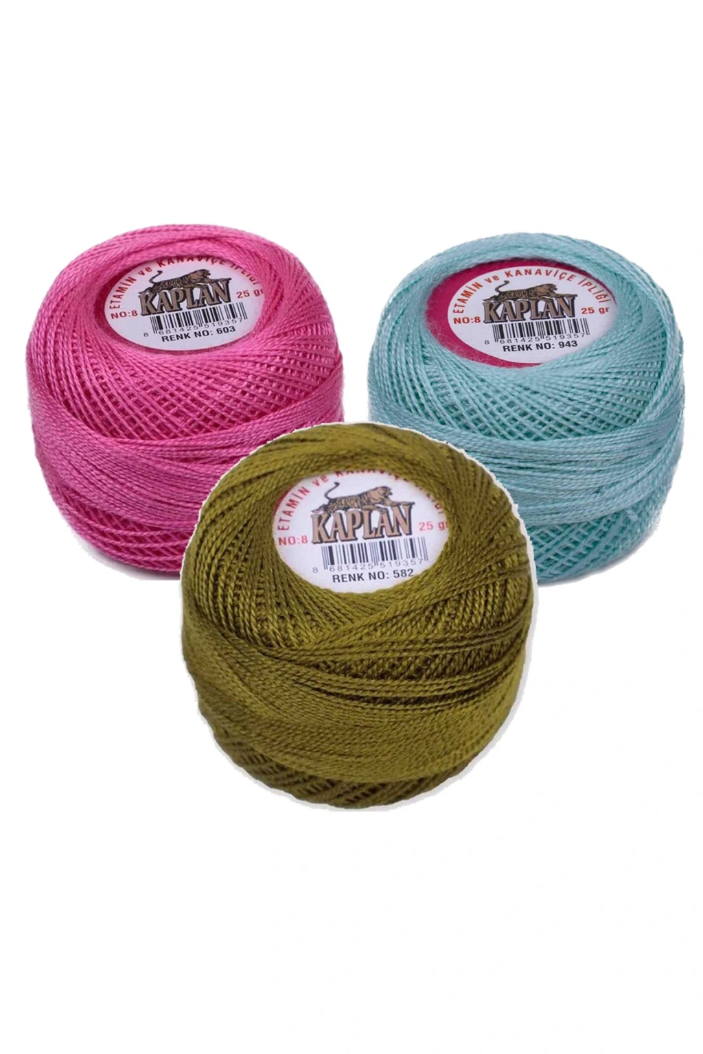 3 Adet Kaplan Etamin Ve Kanaviçe İpi 8 No Kod/Renk: 603 - 943 - 582 - Ryl