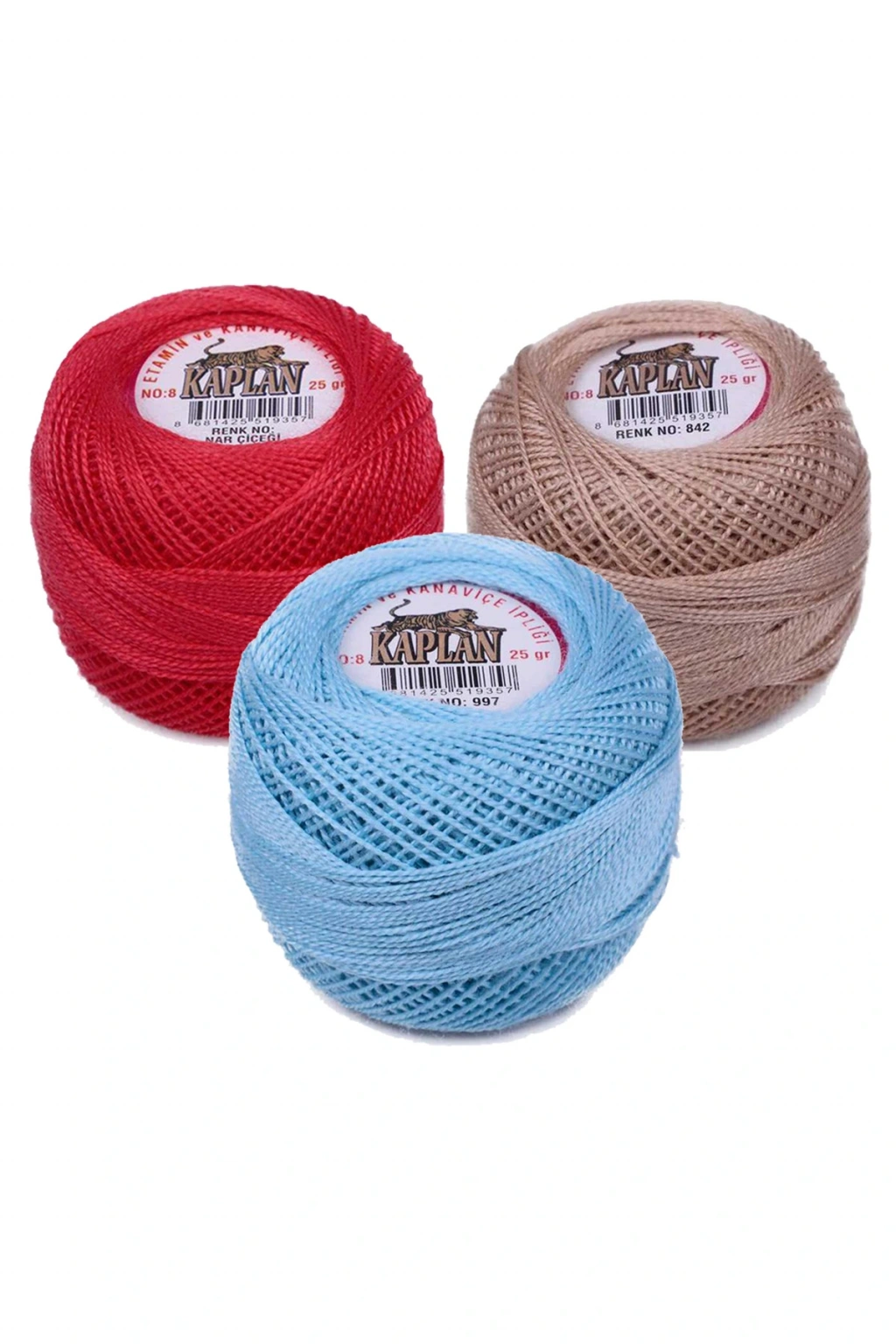 3 Adet Kaplan Etamin Ve Kanaviçe İpi 8 No Kod/Renk: NAR ÇİÇEĞİ - 842 - 997 - Ryl