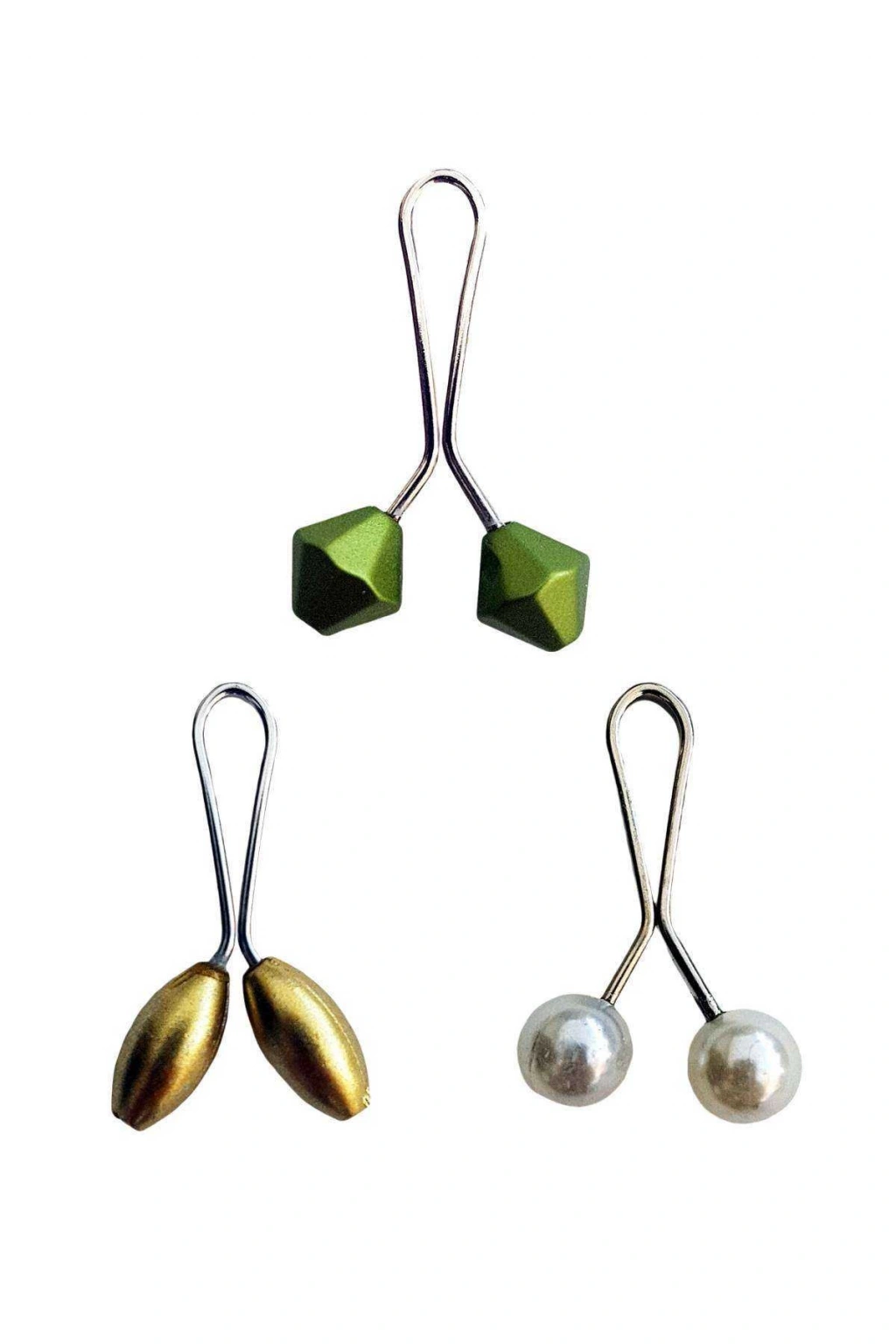 3 Adet Tesettür Eşarp ve Şal Klipsi Sarı İnci Beyaz Yeşil Tesettür giyimde şıklığınızı tamamlayacak şal ve eşarp klipsleri, sıkı tutan kıskacı sayesinde baş örtüsü şal ve eşarplarınızda kaymayı önleyerek şık bir görüntü kazandıracak. Seyahatte ofiste günlük ve iş ortamında hızlı ve pratik kullanım sağlar. Şal ve eşarbınızı zedelemez. Sıkı tutar.