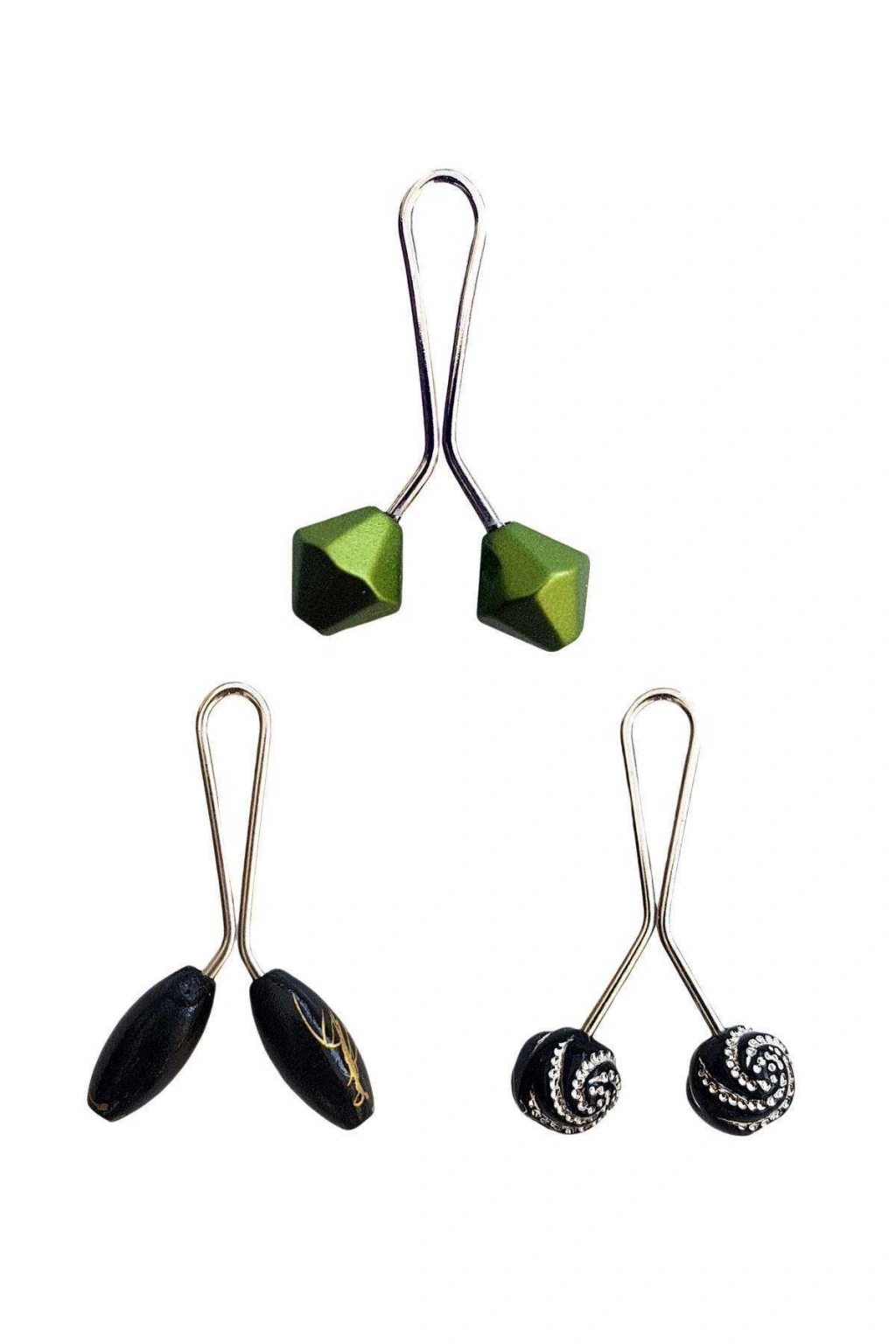 3 Adet Tesettür Eşarp ve Şal Klipsi Siyah Siyah Desenl Yeşil Tesettür giyimde şıklığınızı tamamlayacak şal ve eşarp klipsleri, sıkı tutan kıskacı sayesinde baş örtüsü şal ve eşarplarınızda kaymayı önleyerek şık bir görüntü kazandıracak. Seyahatte ofiste günlük ve iş ortamında hızlı ve pratik kullanım sağlar. Şal ve eşarbınızı zedelemez. Sıkı tutar.