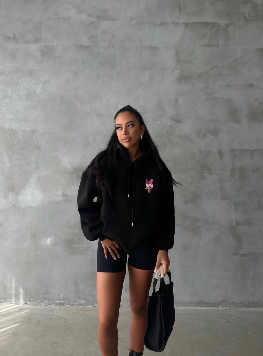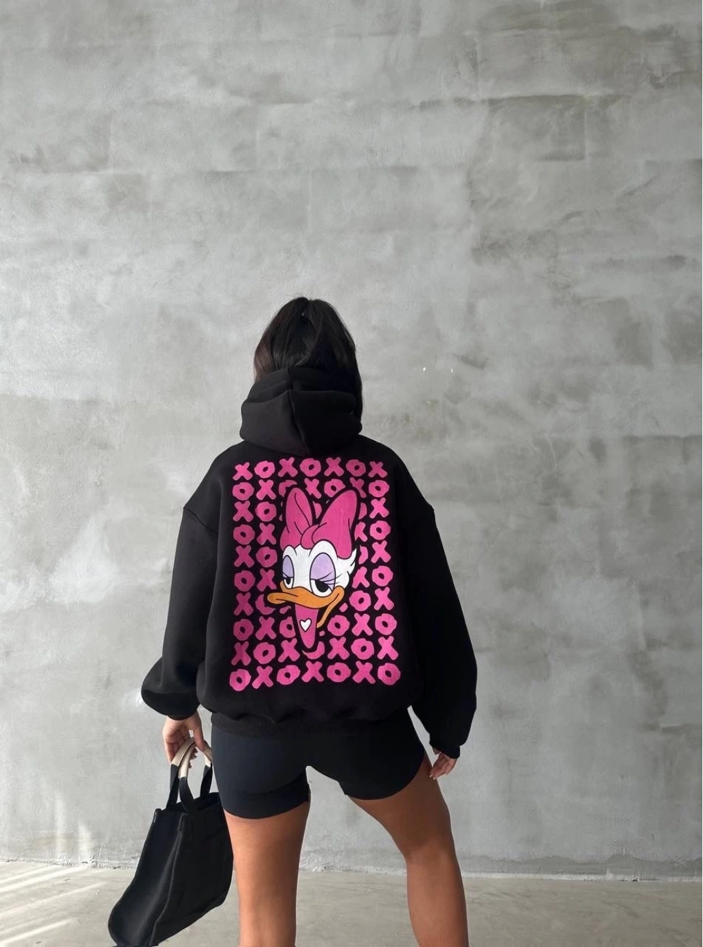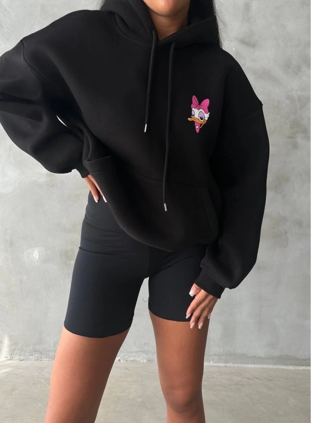 3 iplik şardonlu oversize compact ördek baskılı sweat siyah, rahat ve şık bir seçenektir.