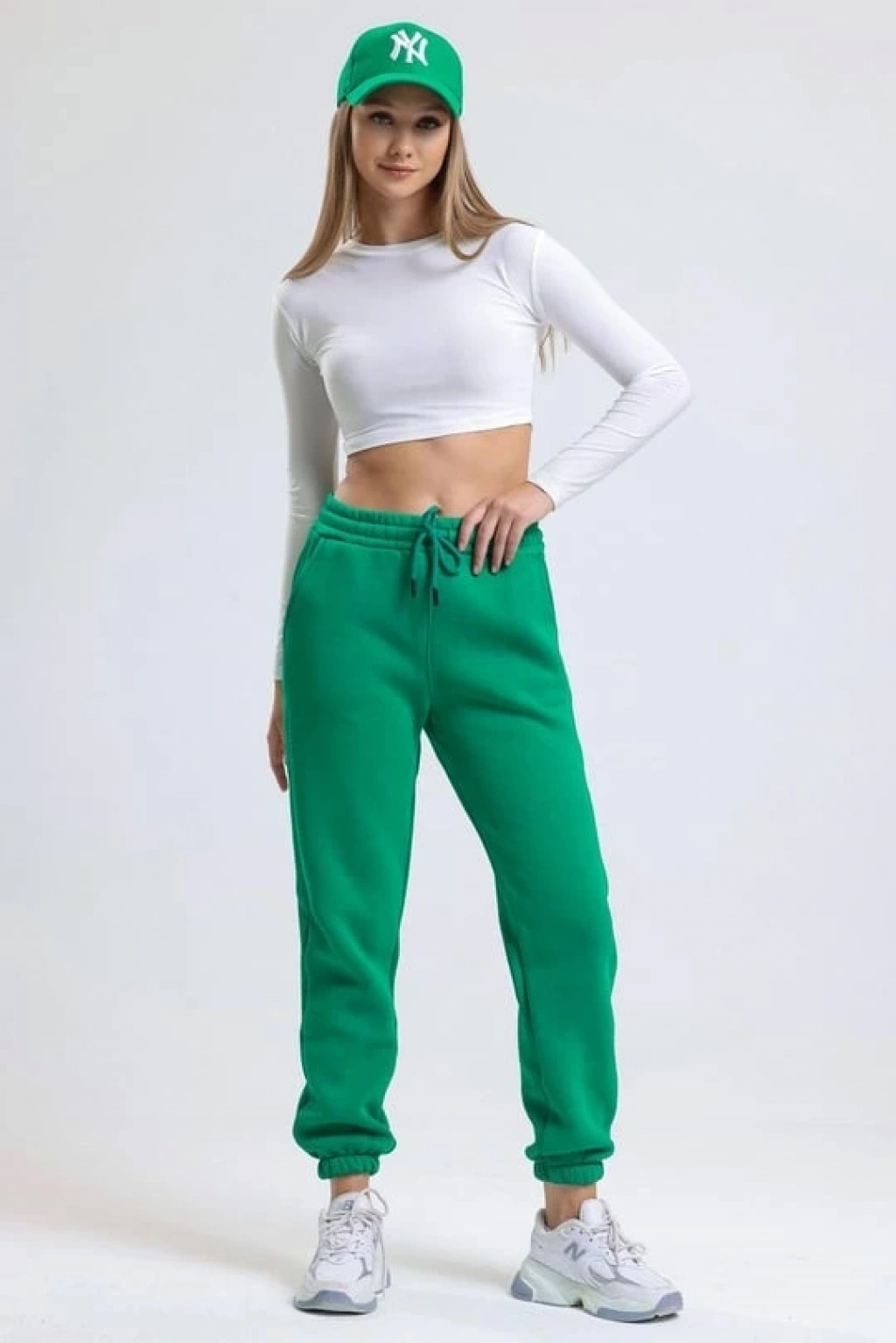 Bir adım önde olmak için stilinize hareket katın! İşte şıklığı ve rahatlığı bir arada sunan 3 iplik şardonlu paça lastikli eşofman yeşil IS001.