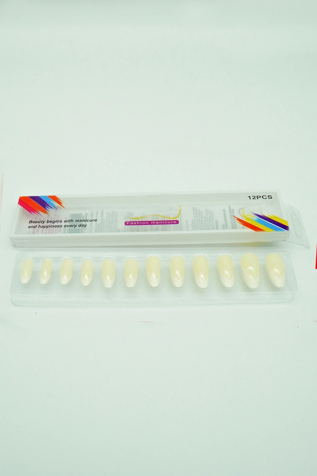 biçomi 12 Adet Badem Tırnak Tak Ve Çık Kendinden Yapışkanlı Takma Tırnak Krem