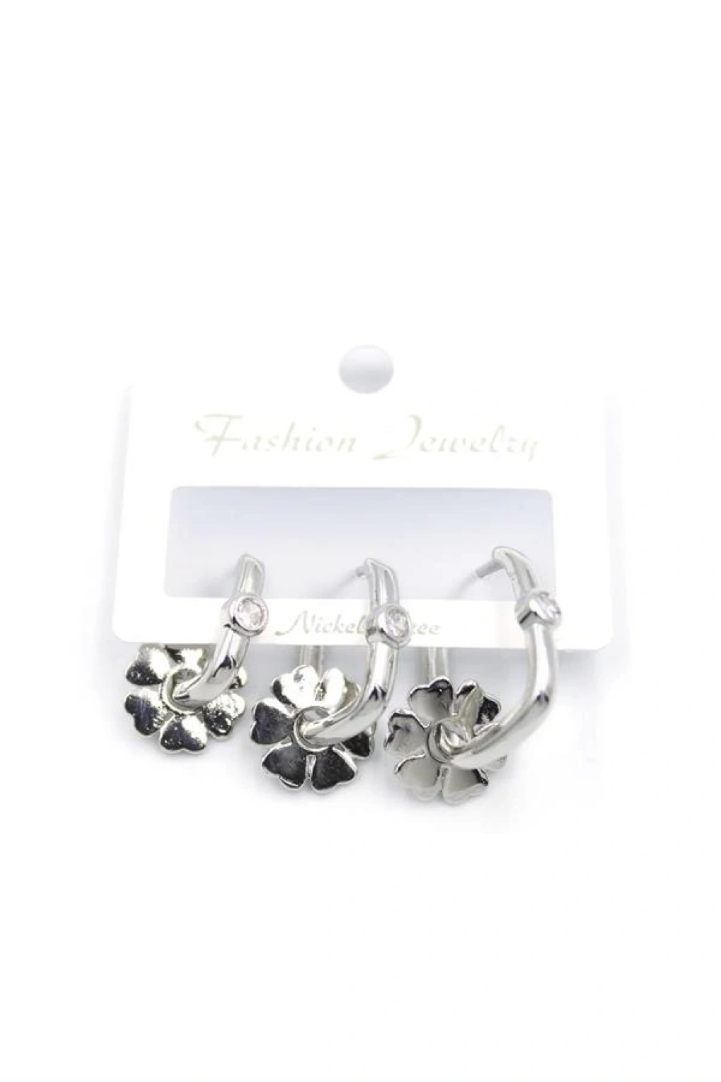 biçomi 3'lü Çiçek Küpe - Gümüş