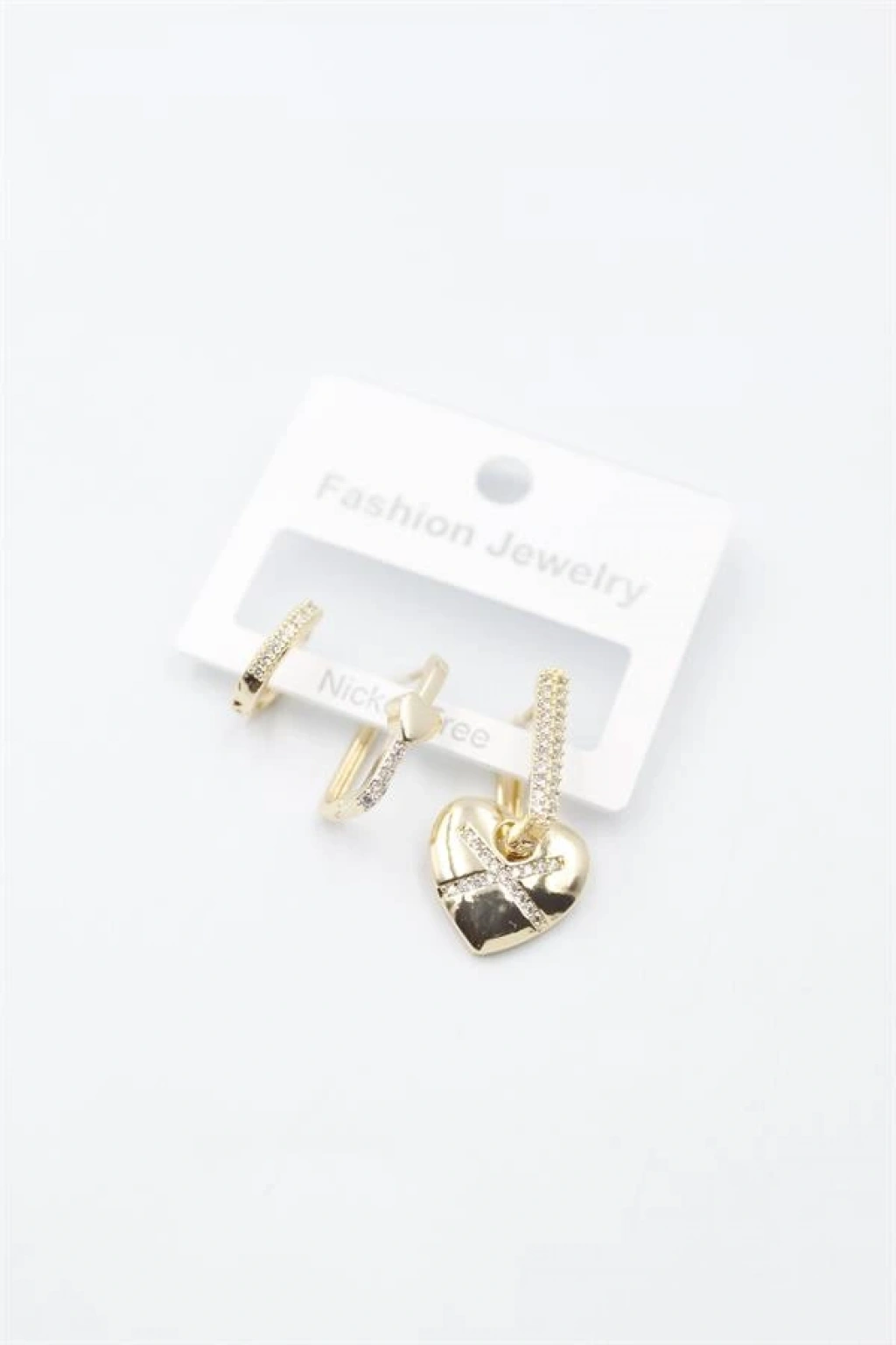 biçomi 3'lü Kalp Küpe - Altın