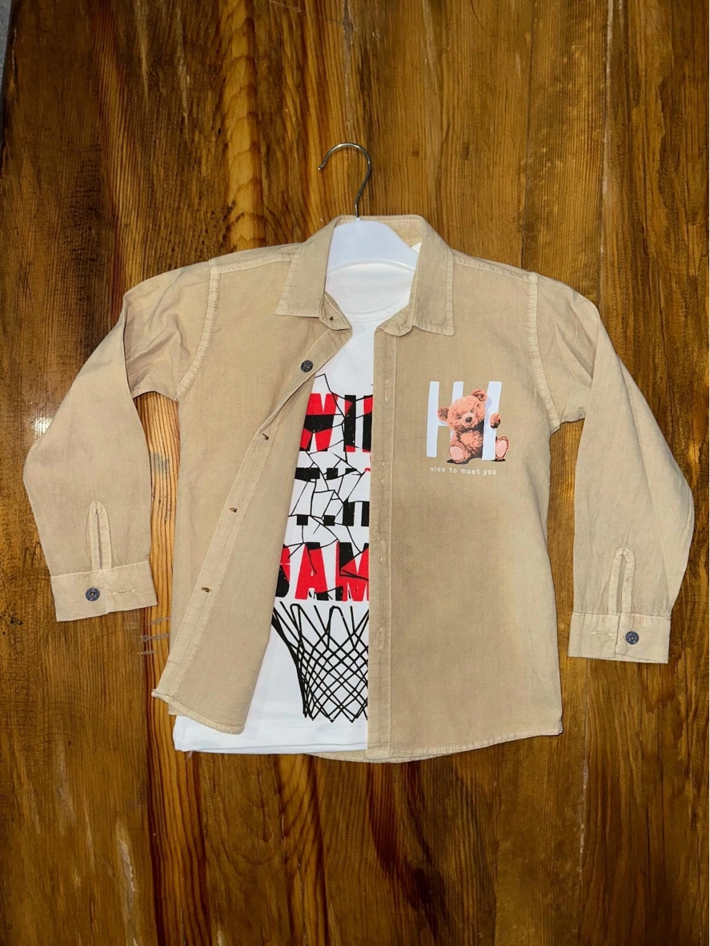 BİÇOMİ 4-8 yaş tişört gömlek kombini vizon
