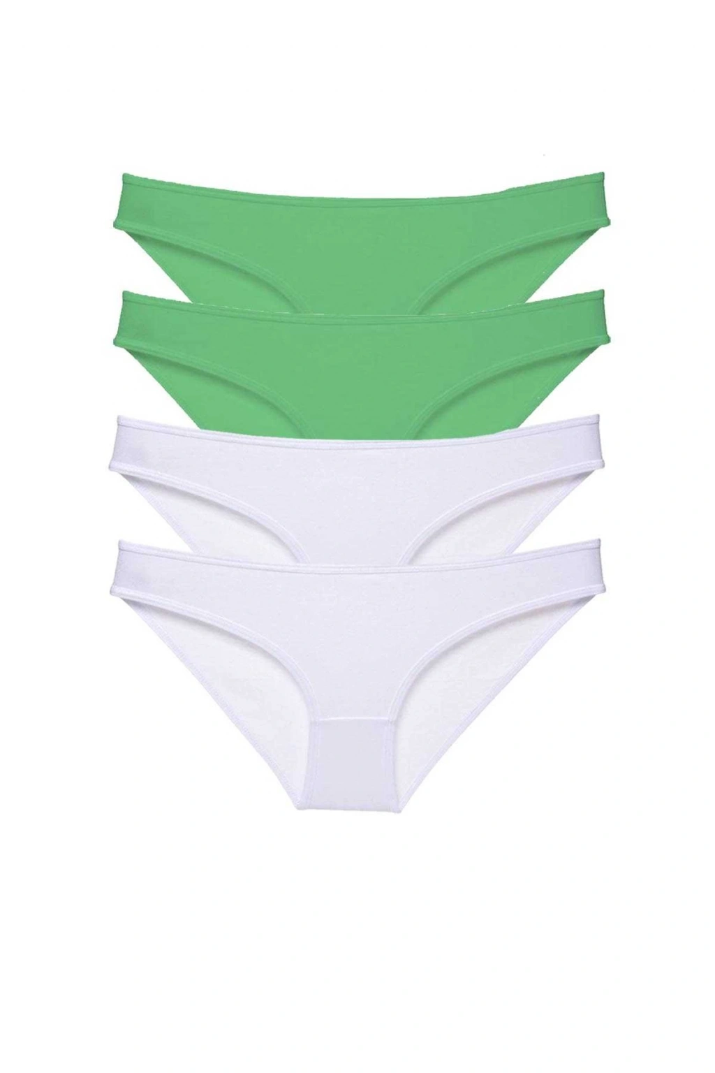 biçomi 4 adet Eko Set Likralı Kadın Slip Külot Yeşil Beyaz