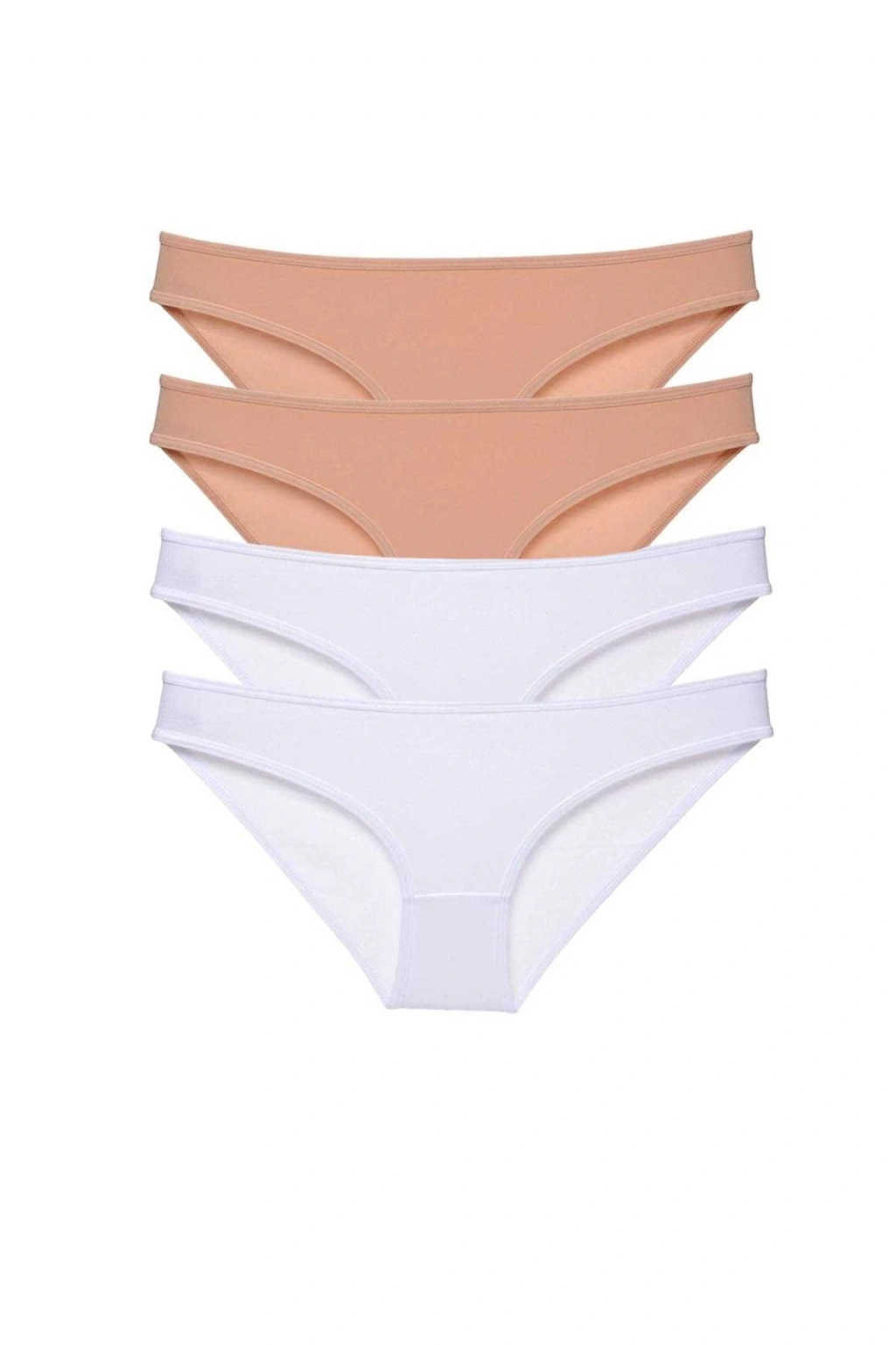 biçomi 4 adet Süper Eko Set Likralı Kadın Slip Külot Ten Beyaz