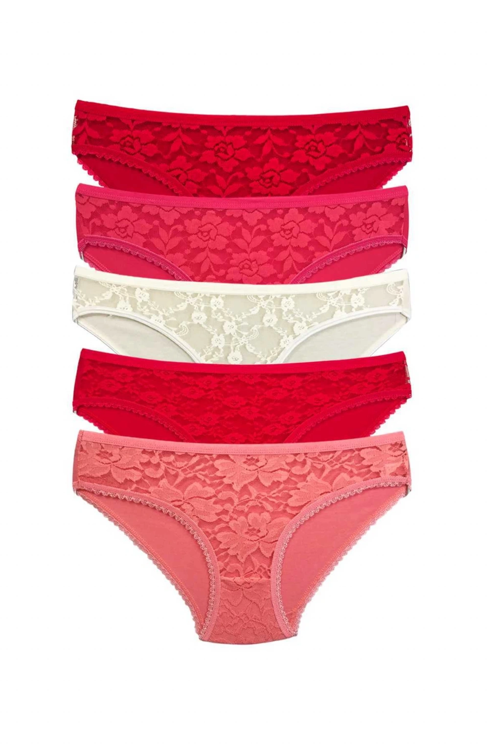 5 Adet Önü Dantelli Transparan Kadın Slip Külot Önü dantelli arkası pamuklu kumaştan üretilmiştir. Düğünlerde gelinlerin kullanacağı özel kadın gelin iç giyim olması yanı sıra gündelik hayatta tüm kombinlerinizle kullanabilirsiniz. Ağ kısmında ekstra parça mevcuttur. Ped takılablir. % 95 pamuk içermektedir. Canlı renkleri ve geniş renk seçeneği ile her kıyafetinize uyar. Sağlığınız için pamuklu kadın iç giyim ürünlerini kullanınız. Pamuklu dokusu sayesinde cildiniz nefes alarak nem dengesini korur. Transparan dantel ön kısmı ile özel anlarınızda tercih edebilirsiniz. Sadelikten sıkılan modern ve şık kadın iç giyim arayan genç ve yetişkin kadınların tercihidir. Biçomi ailesi olarak mutlu ve huzurlu günlerde kullanmanızı temenni ederiz. Paket içeriği: 5 Adet Önü Dantelli Transparan Kadın Slip Külot Renk : Bordo Fuşya Krem Kırmızı Pembe