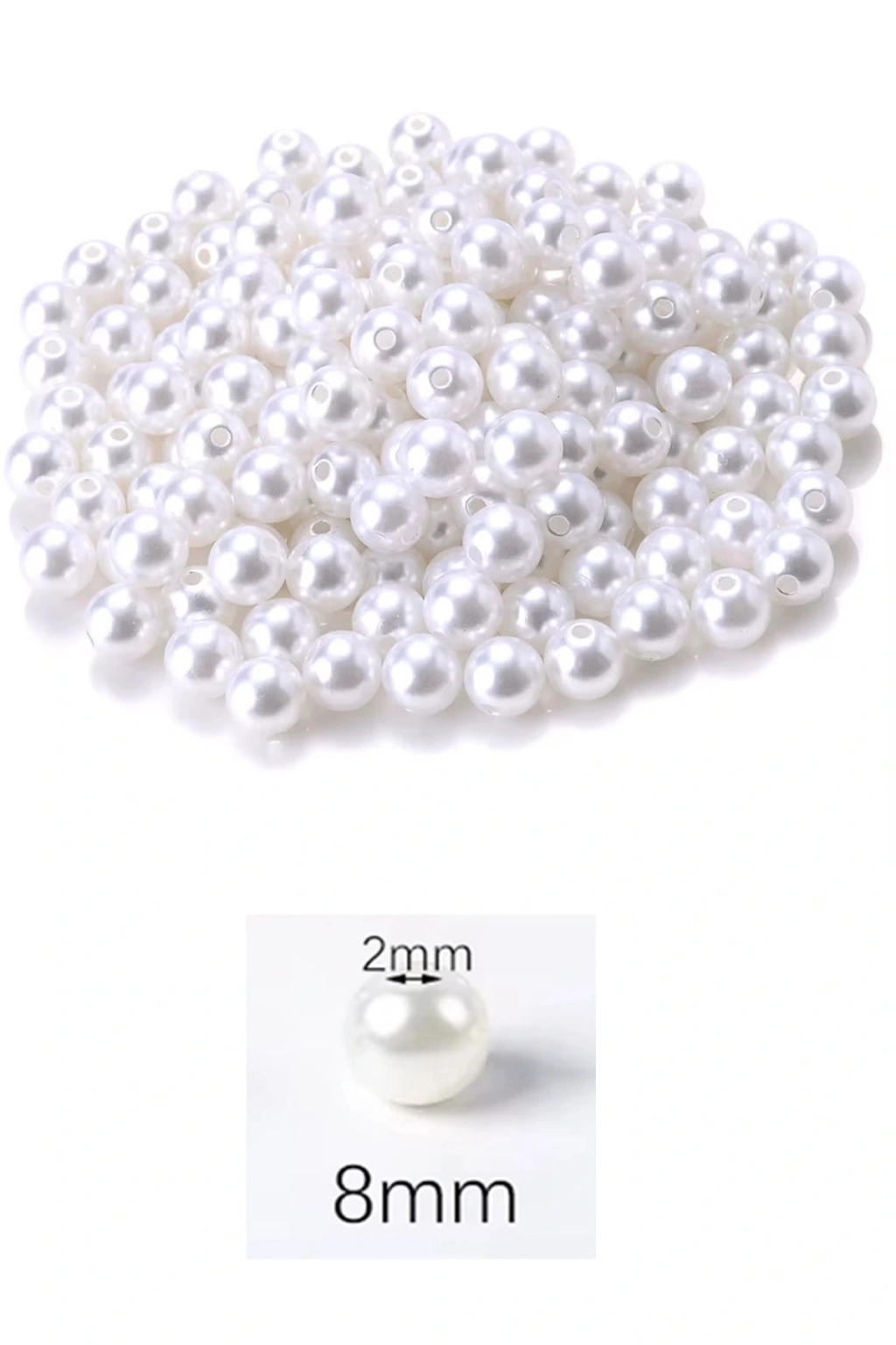 50 gram 8mm Beyaz Renk Plastik İnci Boncuk Çanta ve Takı Yapım Boncuğu (~160 adet)