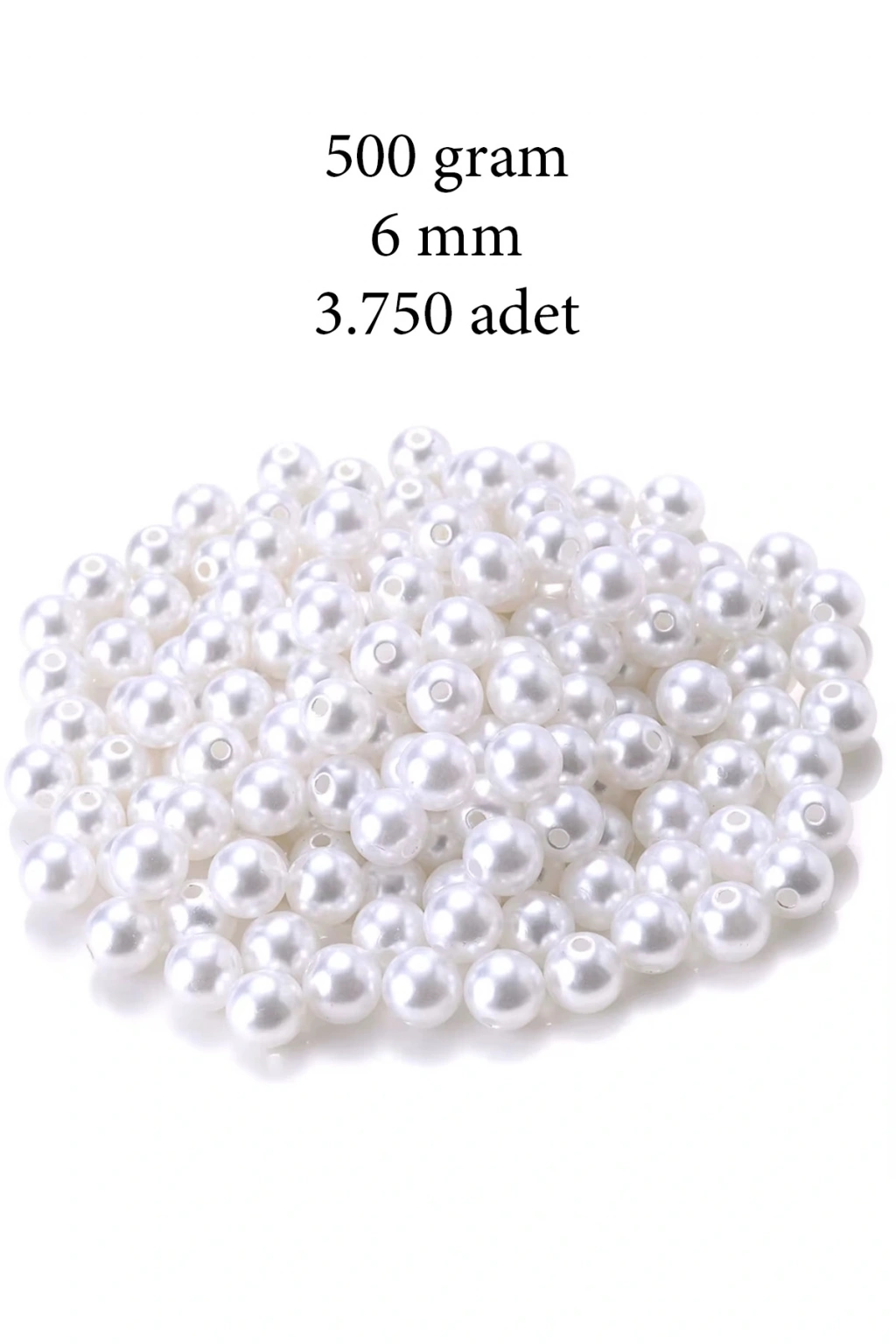 500 gram 6mm Beyaz Renk Plastik İnci Boncuk Çanta ve Takı Yapım Boncuğu (~3.750 adet)
