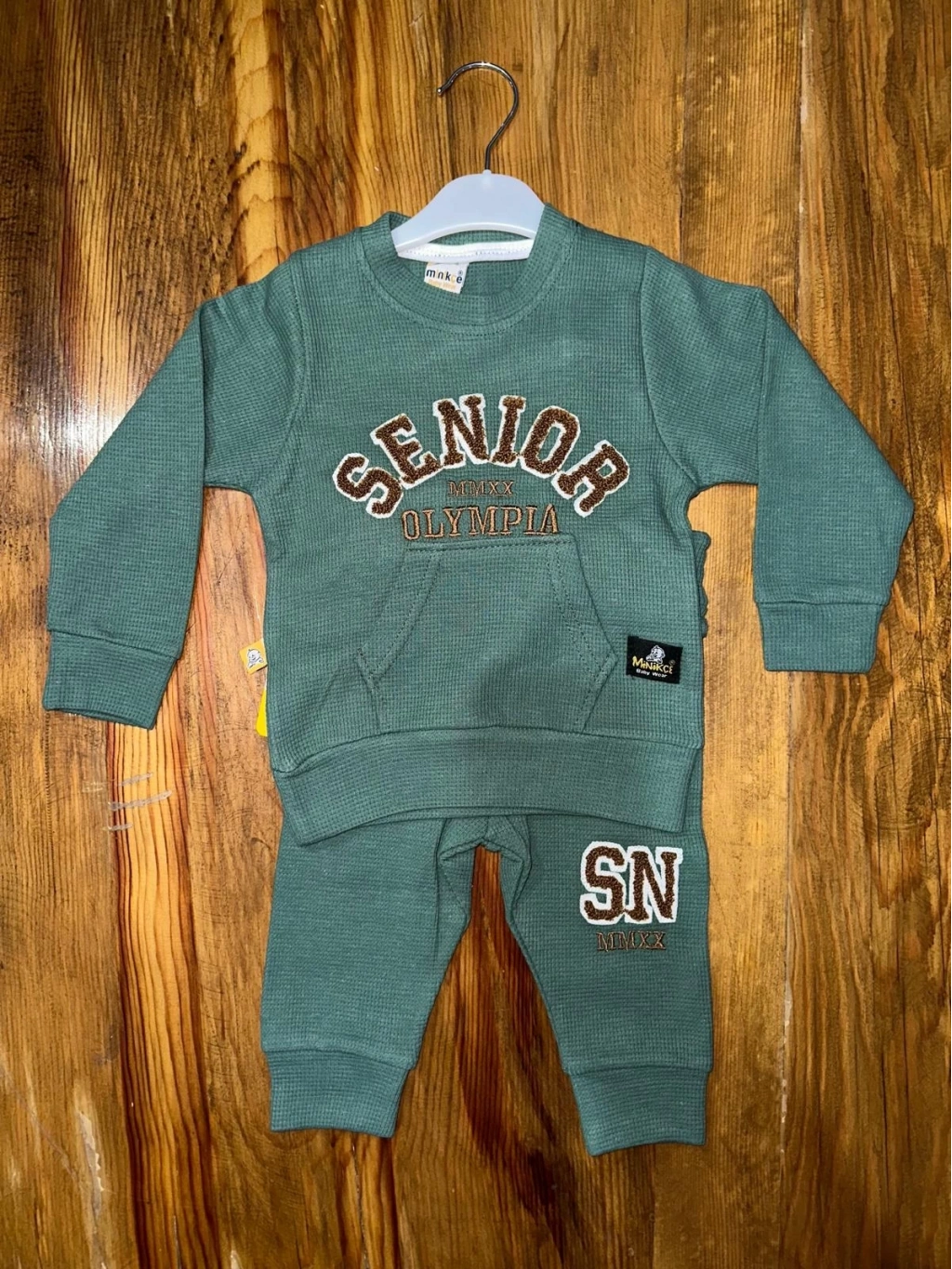 Bu Kanguru Cep Şenior Takım Petrol ile bebeğiniz hem şık hem de rahat bir görünüme sahip olacak.