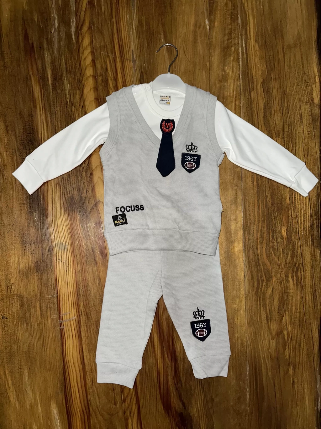 BİÇOMİ 6-24 aylık kravatlı üçlü takım gri