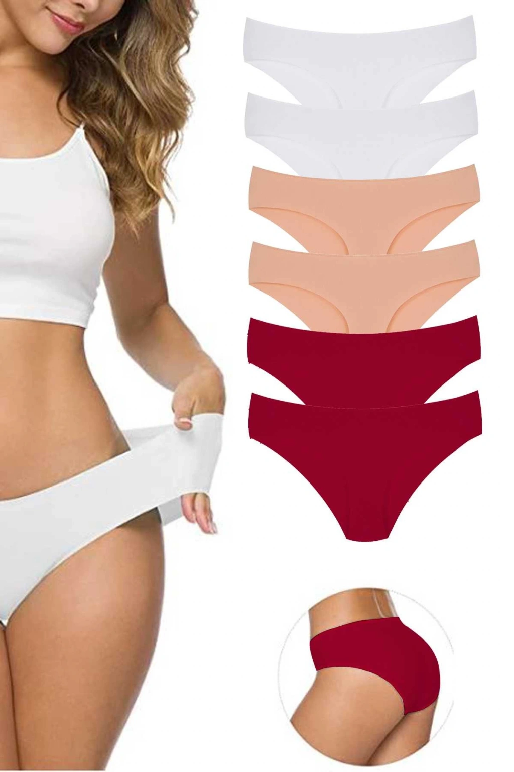 6 Adet Kadın Dikişsiz Lazer Kesim Esnek İz yapmayan Külot Beyaz Ten Bordo 1mm ince ve lazer kesim dikişsiz yapısı sayesinde Pantolon , günlük kıyafet ,gece kıyafetlerinizde iz yapmaz Ofis , gece daveti, seyahat, yolculuk ve dar kıyafetlerde gönül rahatlığıyla kullanabilirsiniz. Hafif ve esnek yapısı sayesinde bedeninizi tam kavrayıp, iç çamaşırı yokmuş hissi vererek iç çamaşırı izi yapmaz ve gün boyu rahat hareket etmenize olanak sunacaktır. Elastik yapısı sayesinde kıvrılma yapmaz. Nefes alan dokusu ile cildinizi sürekli kuru tutar. Siparişleriniz hijyenik olarak tek tek paketlenerek özel poşet içerisinde size ulaştırılacaktır. Sağlıklı günlerde kullanın
