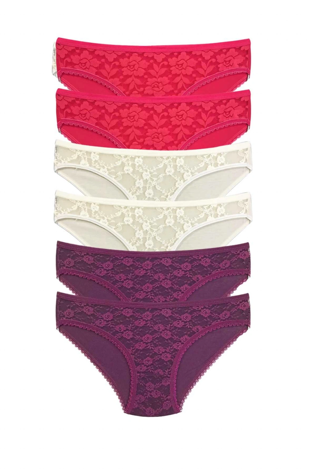 6 Adet Önü Dantelli Transparan Kadın Slip Külot Önü dantelli arkası pamuklu kumaştan üretilmiştir. Düğünlerde gelinlerin kullanacağı özel kadın gelin iç giyim olması yanı sıra gündelik hayatta tüm kombinlerinizle kullanabilirsiniz. Ağ kısmında ekstra parça mevcuttur. Ped takılablir. % 95 pamuk içermektedir. Canlı renkleri ve geniş renk seçeneği ile her kıyafetinize uyar. Sağlığınız için pamuklu kadın iç giyim ürünlerini kullanınız. Pamuklu dokusu sayesinde cildiniz nefes alarak nem dengesini korur. Transparan dantel ön kısmı ile özel anlarınızda tercih edebilirsiniz. Sadelikten sıkılan modern ve şık kadın iç giyim arayan genç ve yetişkin kadınların tercihidir. Biçomi ailesi olarak mutlu ve huzurlu günlerde kullanmanızı temenni ederiz. Paket içeriği: 6 Adet Önü Dantelli Transparan Kadın Slip Külot Renk : Fuşya Krem Mürdüm