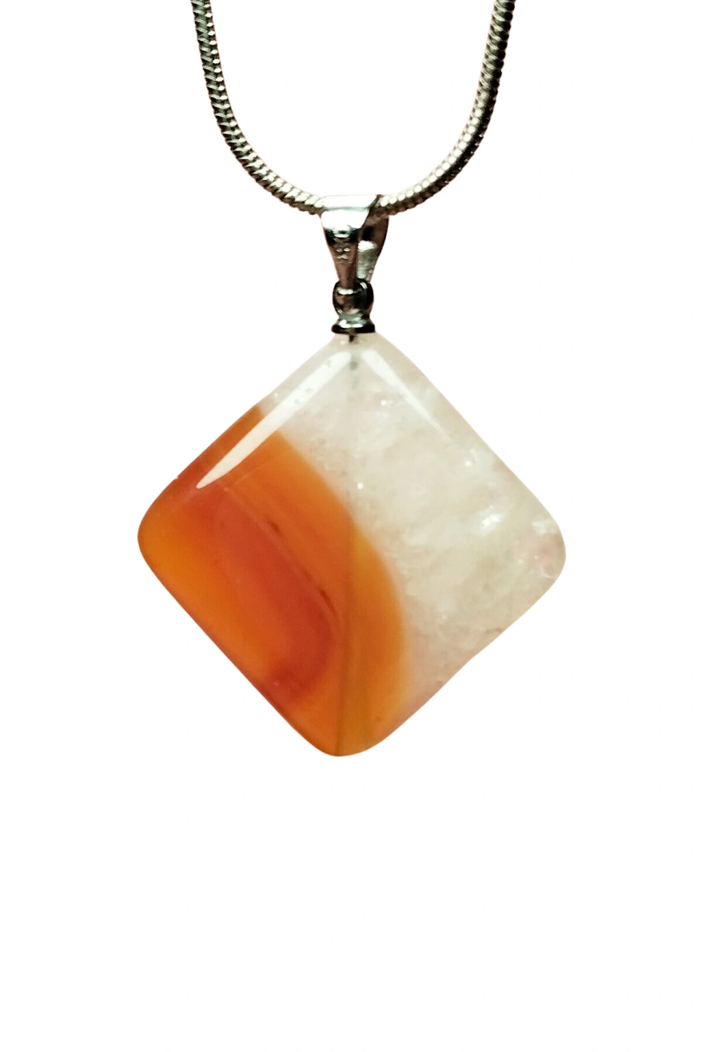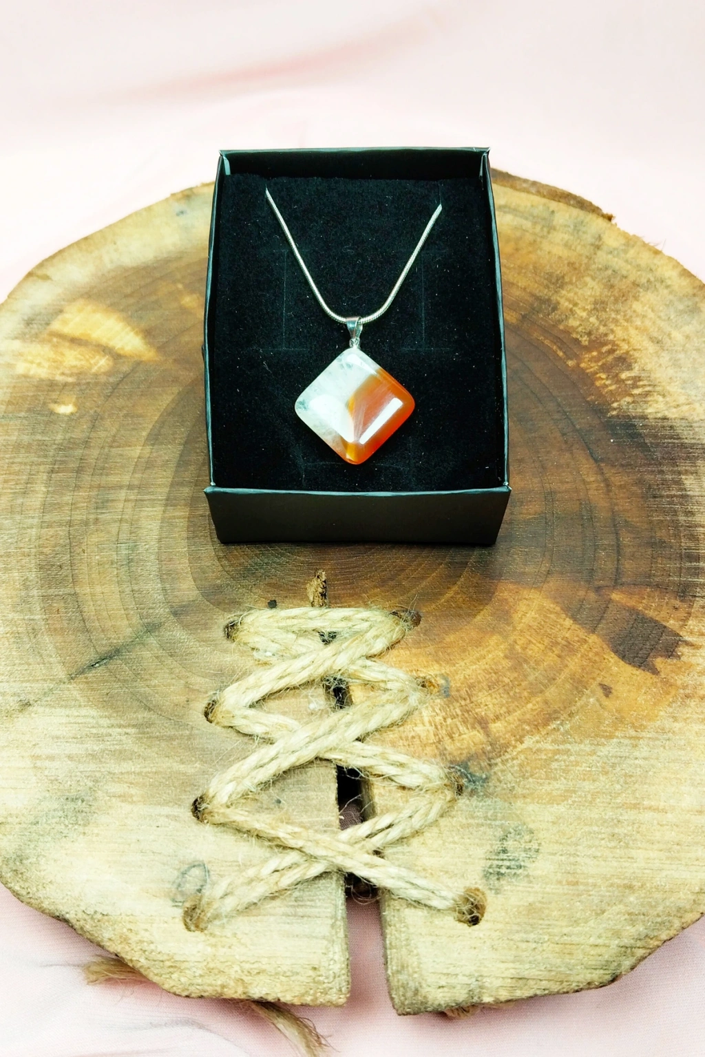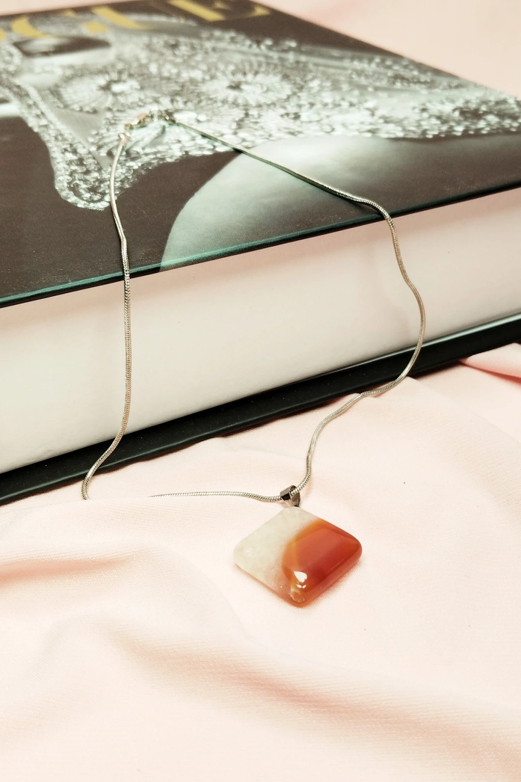 biçomi Akik Doğal Taşı Zincirli El Yapımı Kolye Uç: 3 cm Zincir: 20 cm kutulu