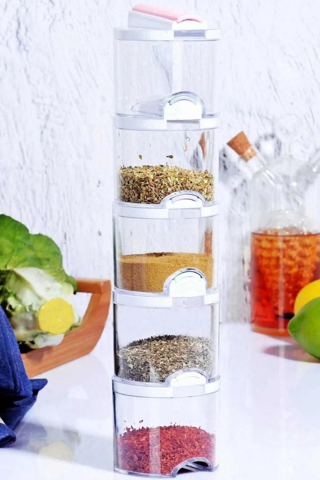 Akrilik Renkli Geçmeli 5'li Bremen Pratik Baharatlık Seti 5 Parçadır Akıllı kapaklıdır. Birbirine geçmelidir. Dolaplarınızda yer kaplamaz. 5 farklı baharatlarınızı hem saklayabilir hemde içecek ve yiceklerinize ölçülü serpebilirsiniz. Ürün Ölçüleri : Boy : 12 cm En : 8 cm Toplam Boy: 25 cm Tuzluk , Biberlik , Pul biber , kekik , susam vb gibi baharatlarınız saklayabilirsiniz. |