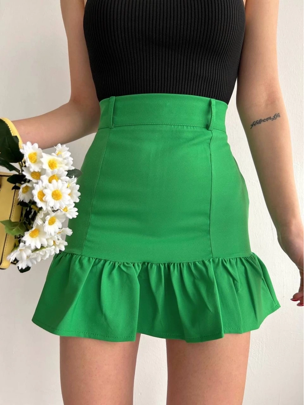 Bu sezonun trend parçalarından biri olan Altı Fırfırlı Etek Yeşil S24817, şıklığı ve zarafeti bir arada sunuyor.