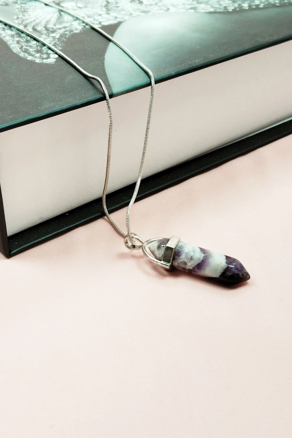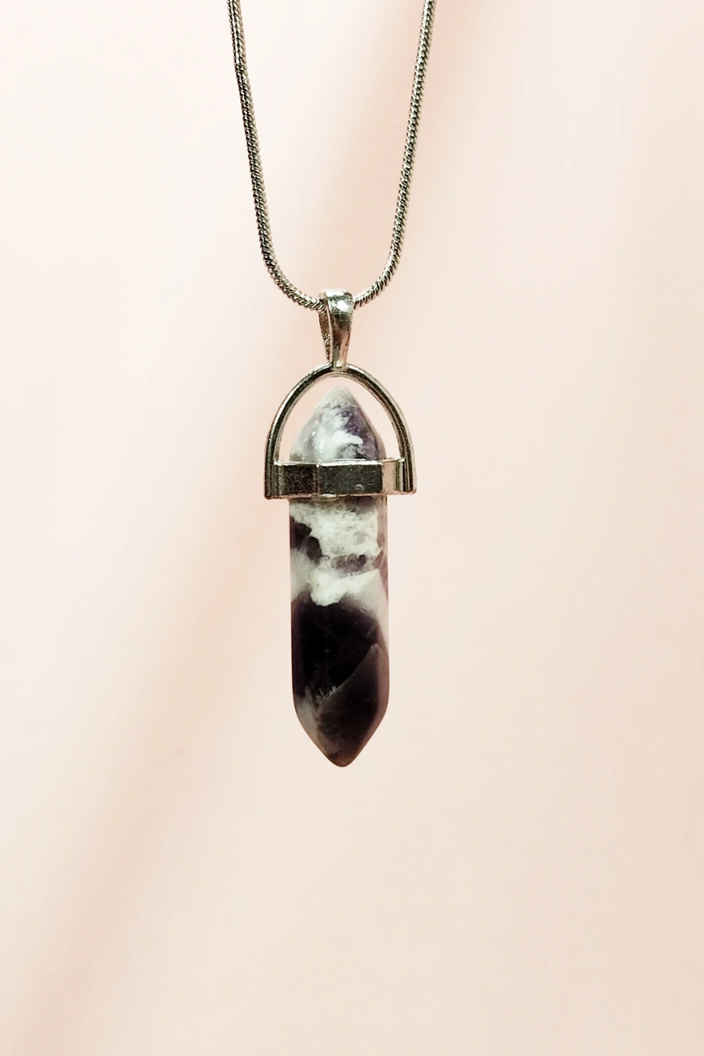 biçomi Ametist Doğal Taşı Zincirli El Yapımı Tasarımlı Kolye Uç: 3,5 cm Zincir: 20 cm Kutulu