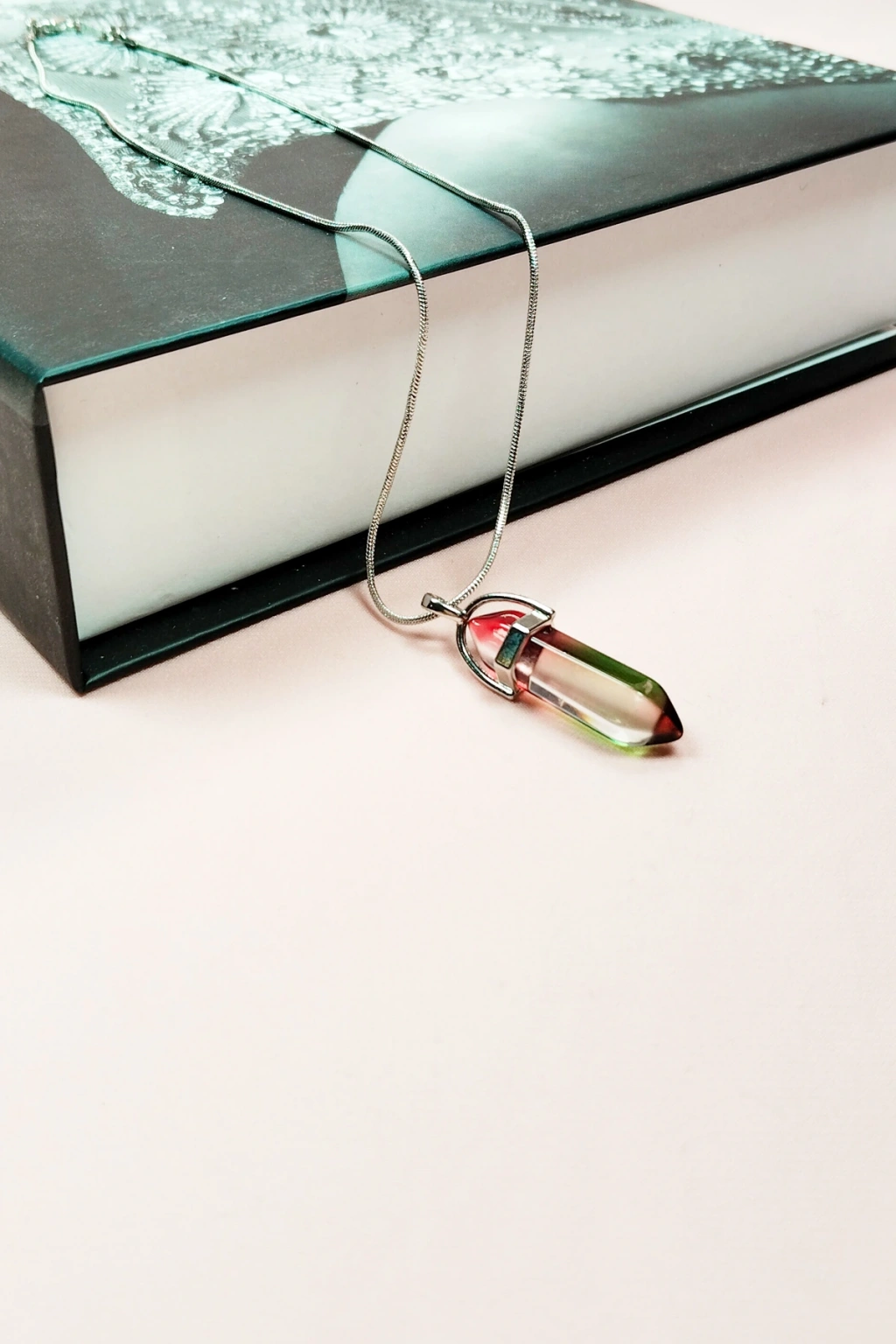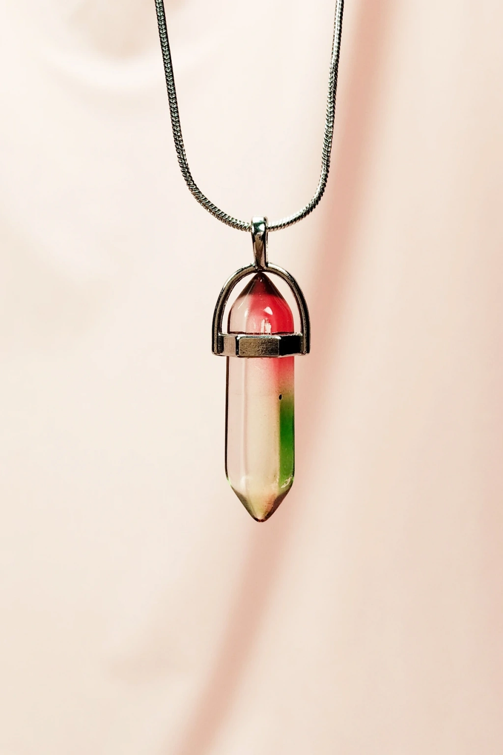 biçomi Aventurin Doğal Taşı Zincirli El Yapımı Tasarımlı Kolye Uç: 3,5 cm Zincir: 20 cm Kutulu
